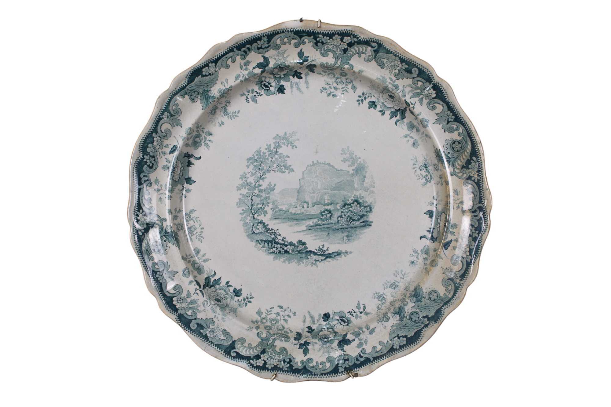 GRANDE PIATTO DA PARETE in ceramica dipinta manifattura davenport fine XIX / XX secolo cm Ø 49