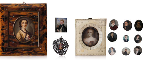 Lotto di quattordici miniature su avorio e altri supporti, XIX-XX secolo, dim. massima cm. 8,2x6,7.