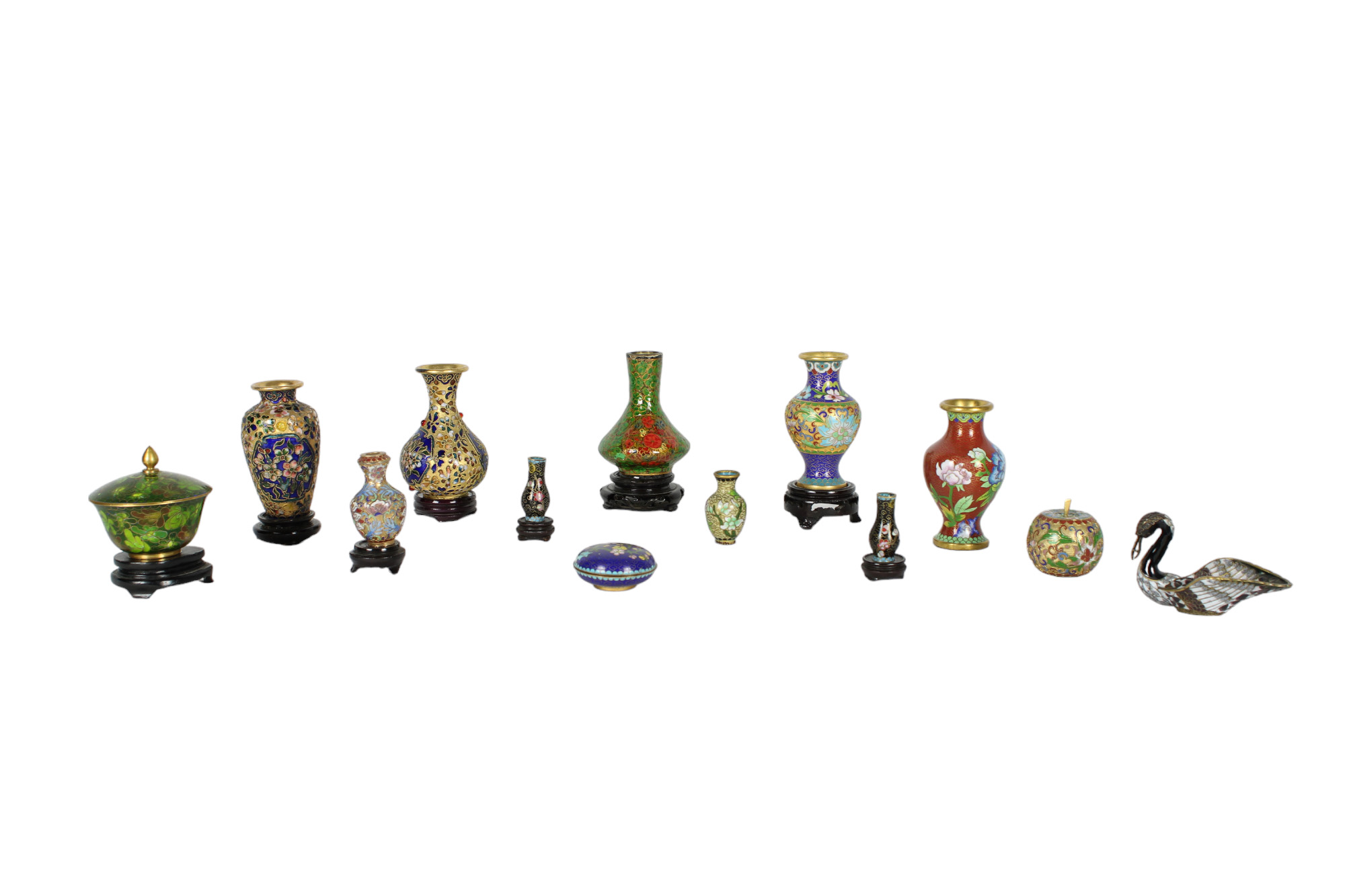 LOTTO DI 13 OGGETTI in cloisonne di gusto orientale XX secolo misure varie