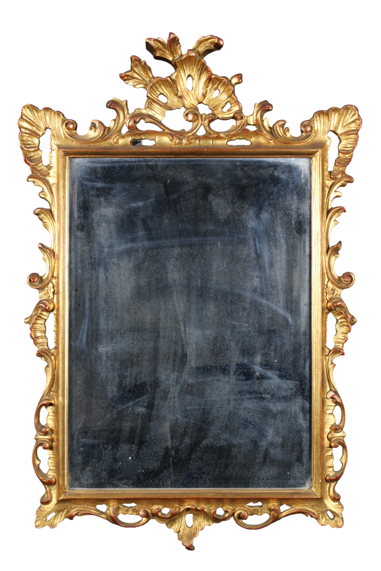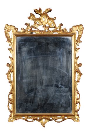 SPECCHIERA in legno finemente scolpito e dorato di gusto settecentesco Venezia fine XIX secolo h cm 83 x 90