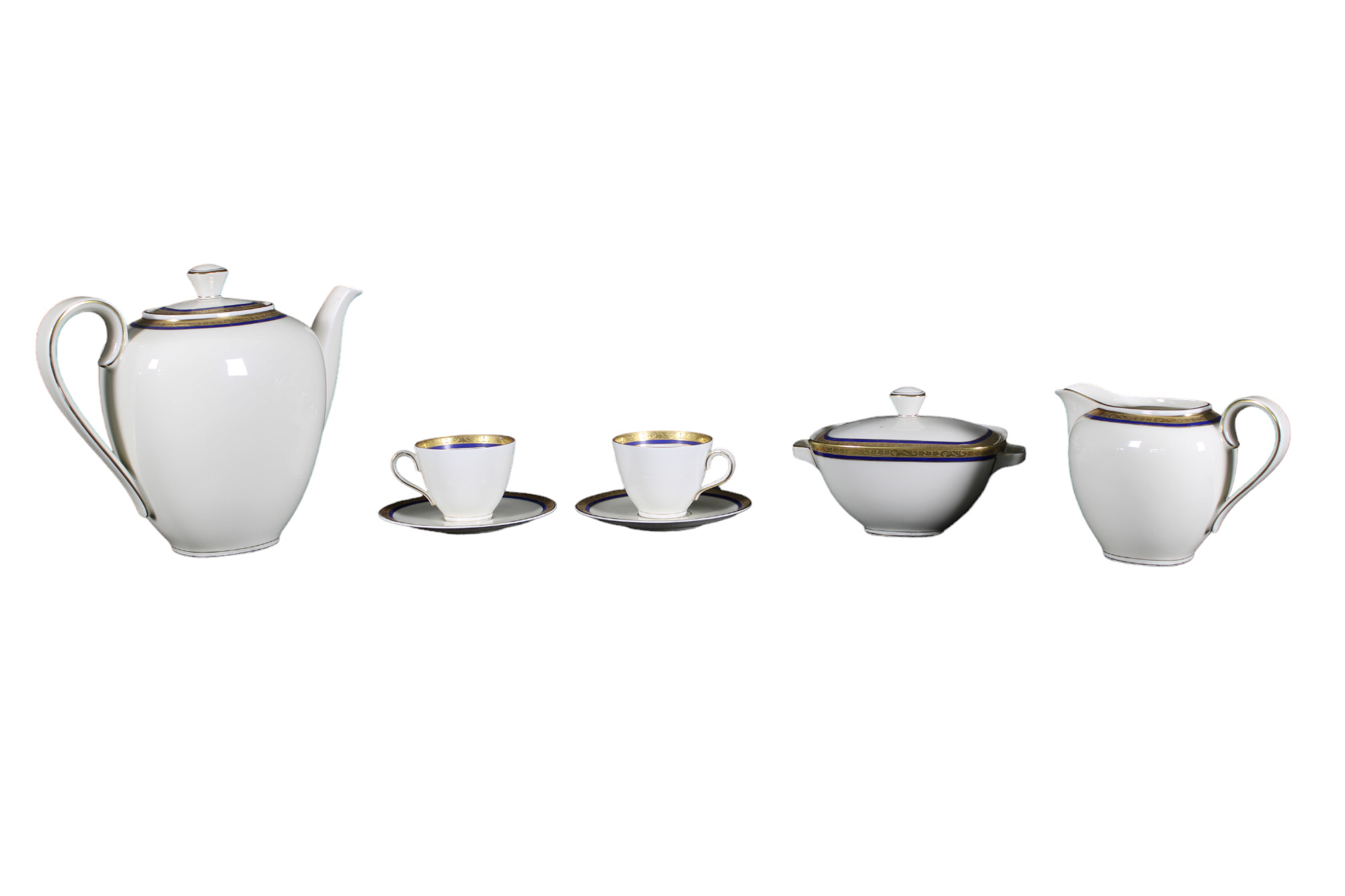 SERVIZIO TETE A TETE 5 pezzi in porcellana perfilato in oro e blu cobalto manifattura Kea Krauthim Bavaria XX secolo misure varie