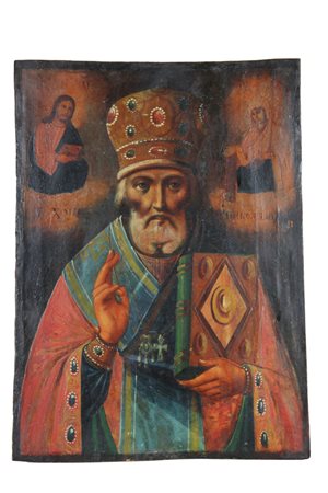 ICONA RUSSA raffigurante San Nicola XX secolo h cm 40 x 29