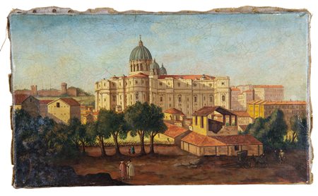 OLIO SU TELA raffigurante Basilica scuola italiana vecchia fattura h cm 27 x 47
