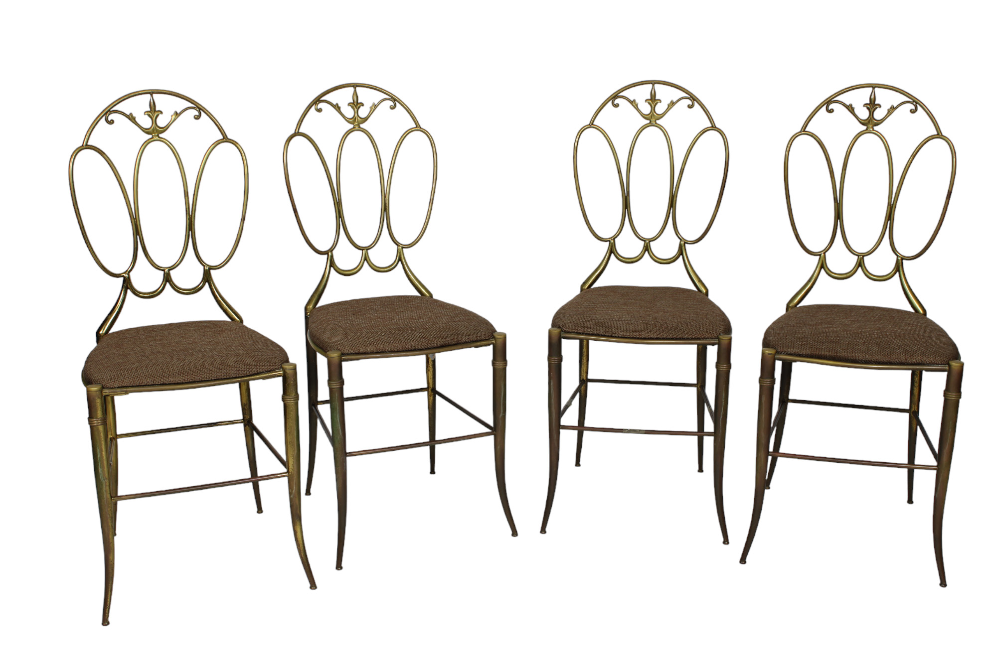 4 CURIOSE SEDIOLINE in ottone con seduta in tessuto vintage italiano XX secolo h cm 99 x 40 x 38