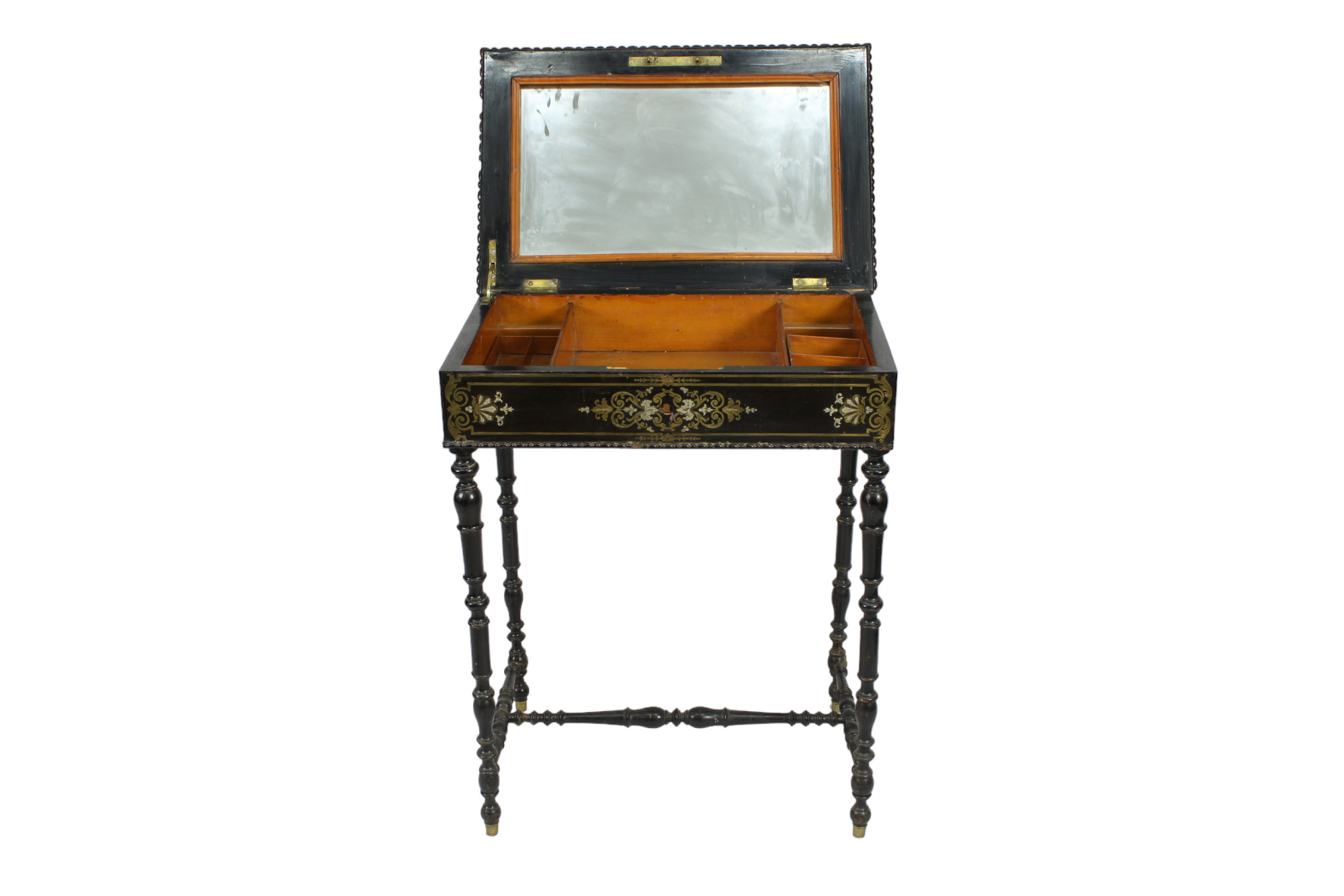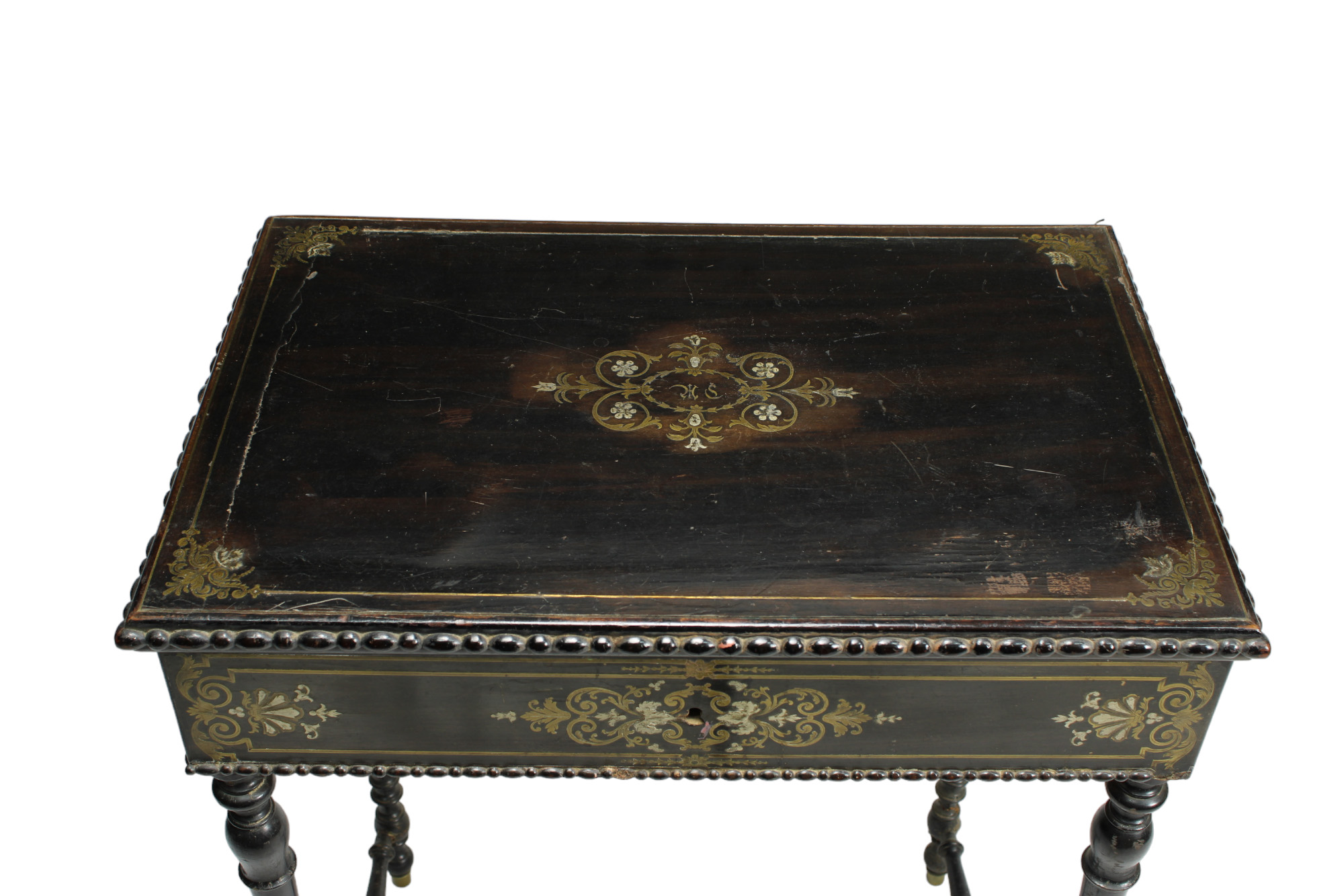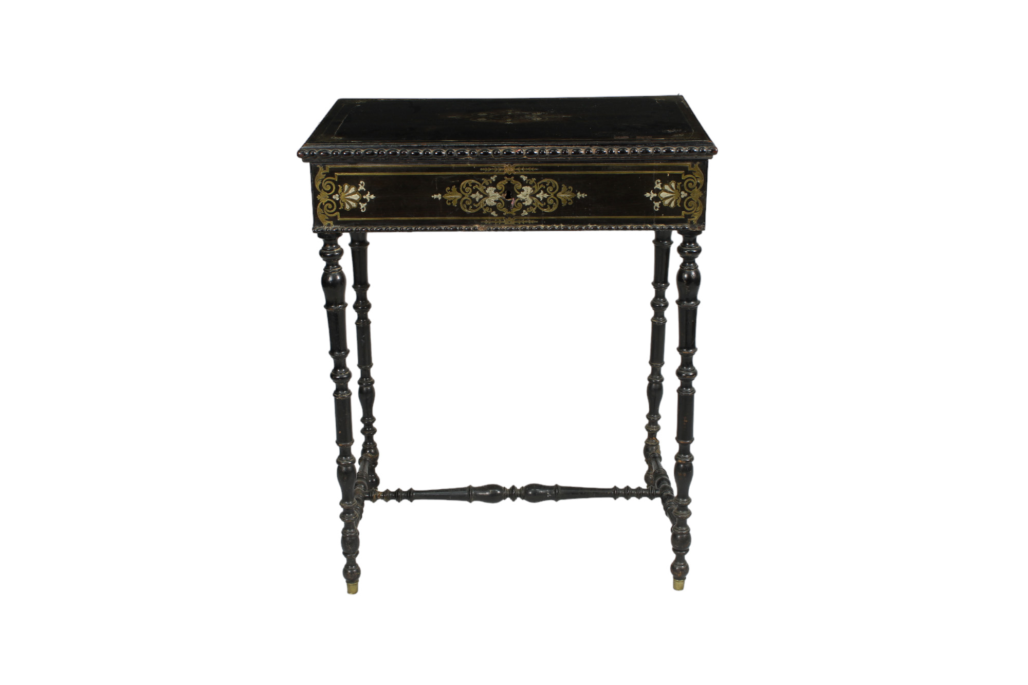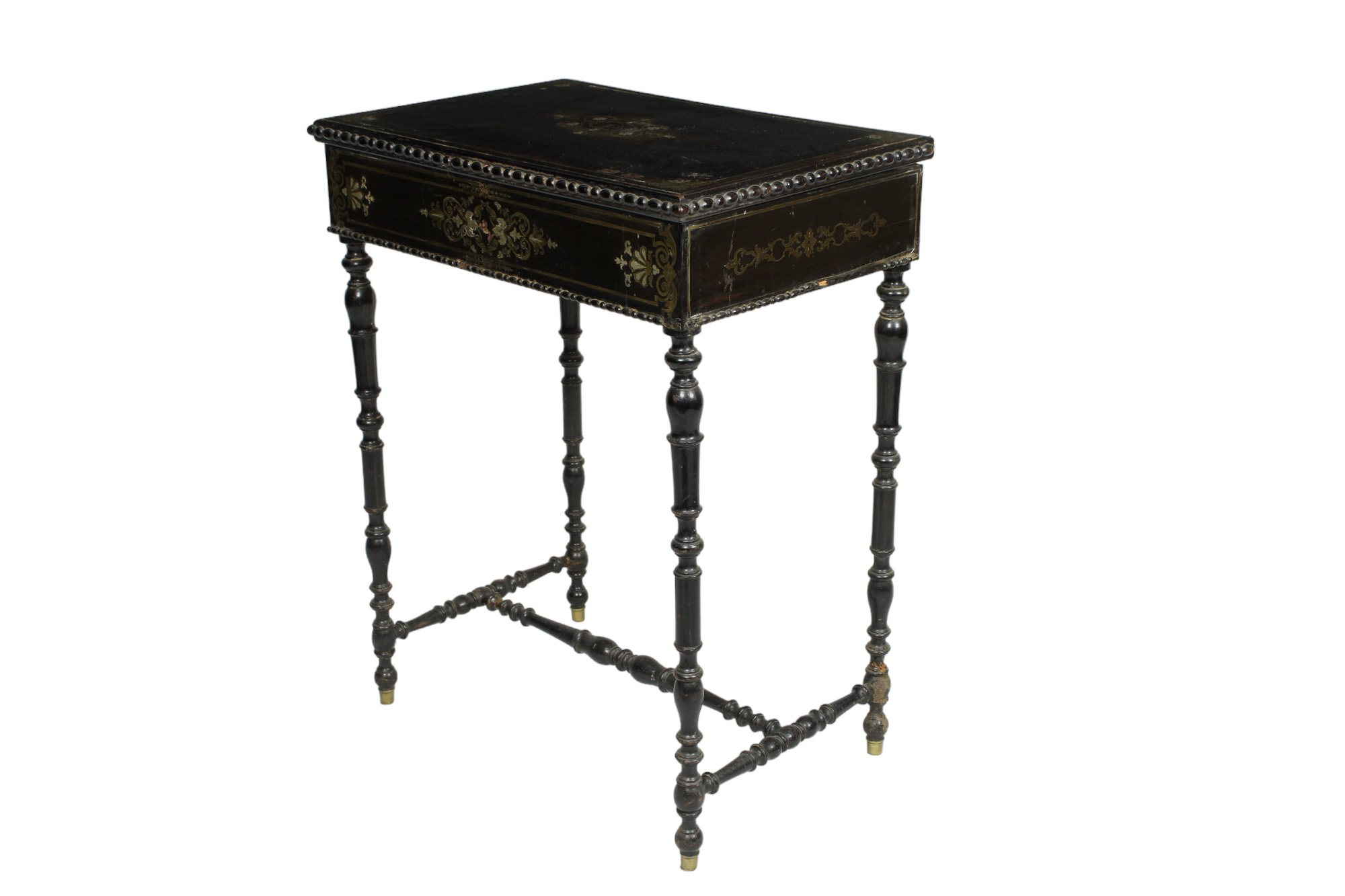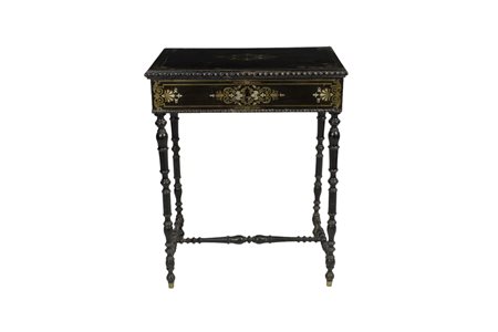 TAVOLINO NAPOLEONE III in legno ebanizzato e tarsie in ottone Francia XIX secolo h cm 73 x 58 x 39