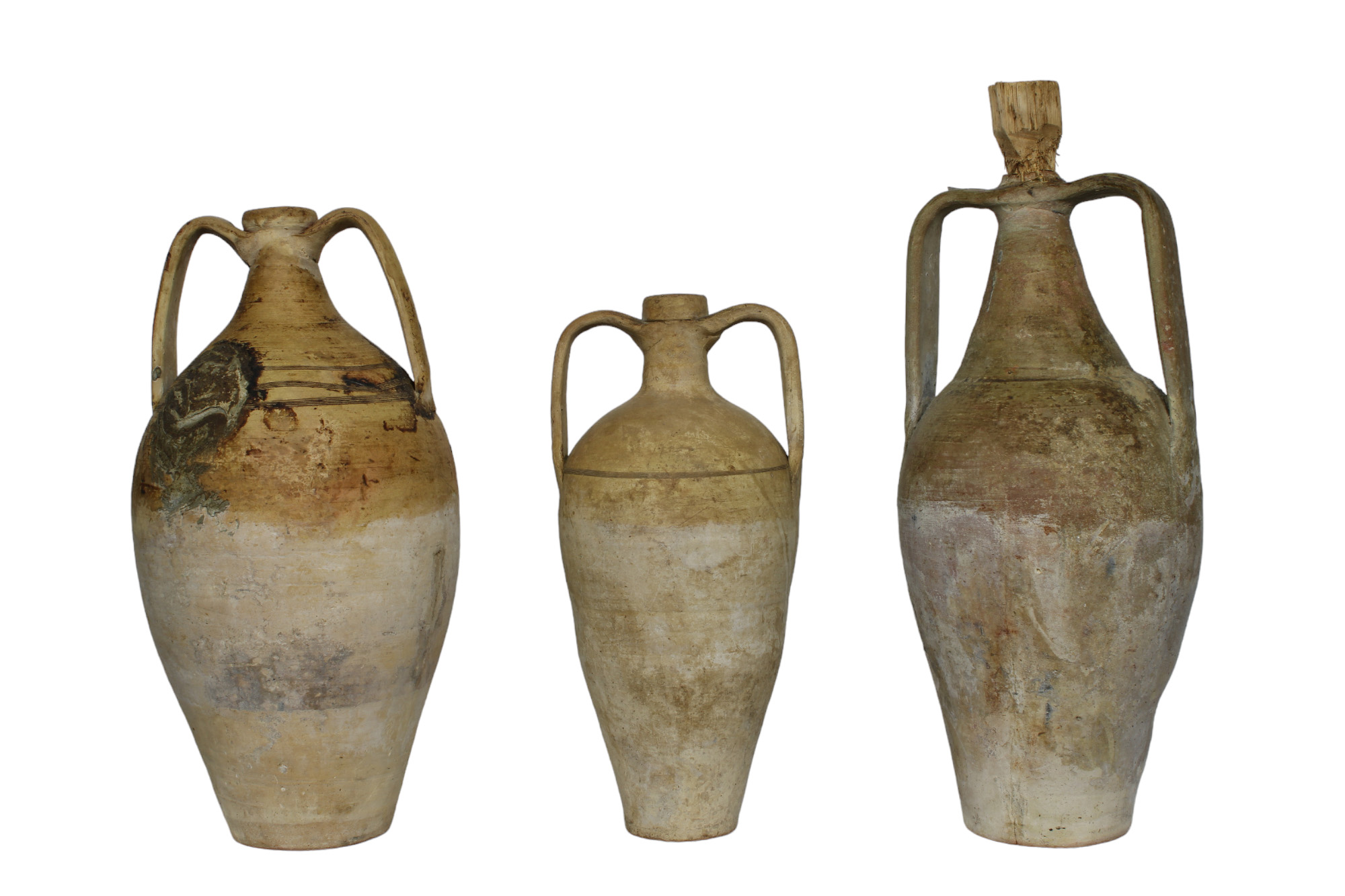 LOTTO DI 3 BUMMULI in coccio con manici Sicilia XX secolo h cm 55 x 27 / h cm 55 x 25 / h cm 47 x 20