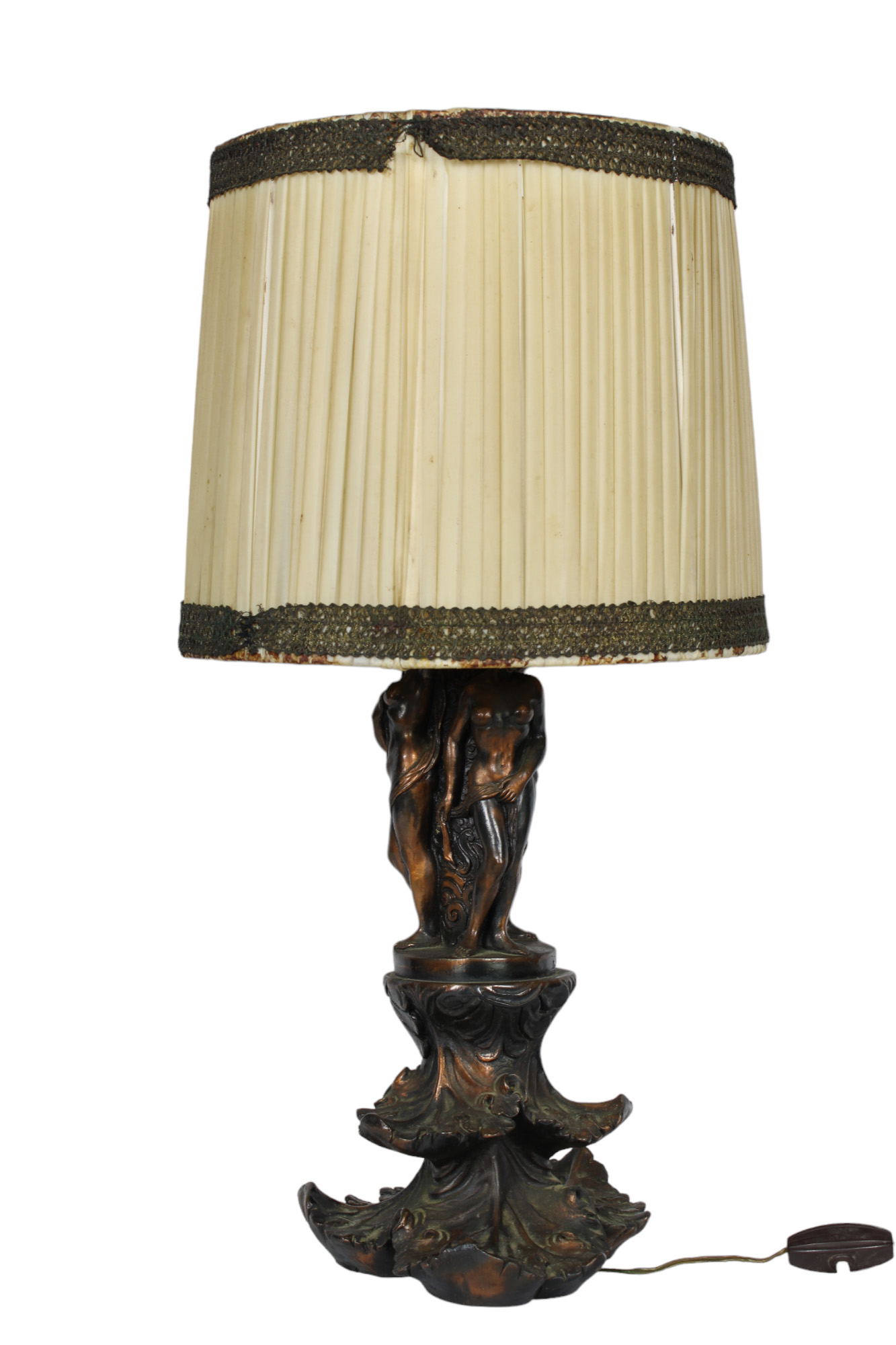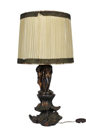 LUME DA TAVOLO in fusione di metallo bronzato raffigurante figure femminili Francia XX secolo h cm 54 x 24