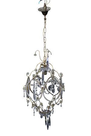 PICCOLO LAMPADARIOin metallo dorato rivestito da perline di vetro e brindoli, difetti e mancanze Sicilia primi 900 h cm 87 x 33