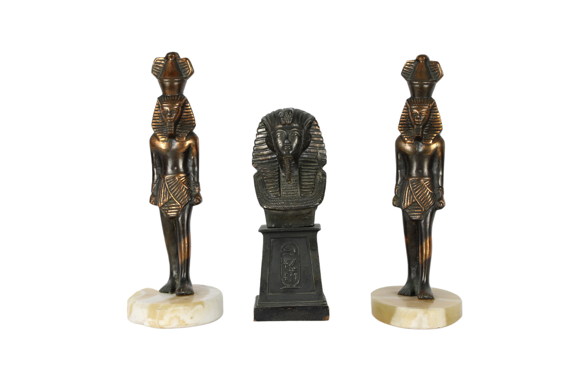 3 SCULTURE in bronzo raffigurante figure egizie XX secolo h cm 23 / h cm 18