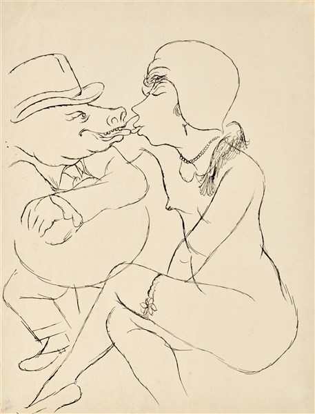 GEORGE GROSZ "Circe" 1927 china e inchiostro su carta cm 59,5x45,6 Inscritto in