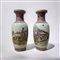 In porcellana policroma su fondo bianco con decorazioni floreali, figure orientaleggianti e versi di poesie orientali. Felatura sul corpo di uno dei due. Segnati alla base. Ultimo periodo dinastia Qing.