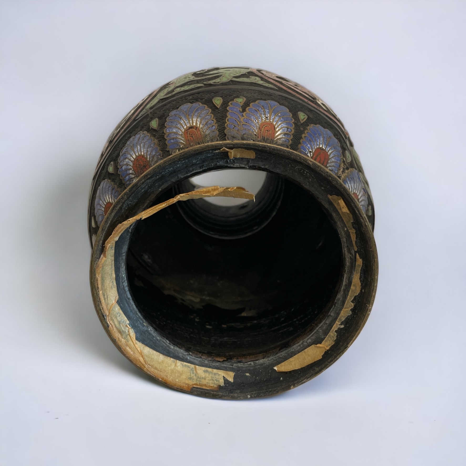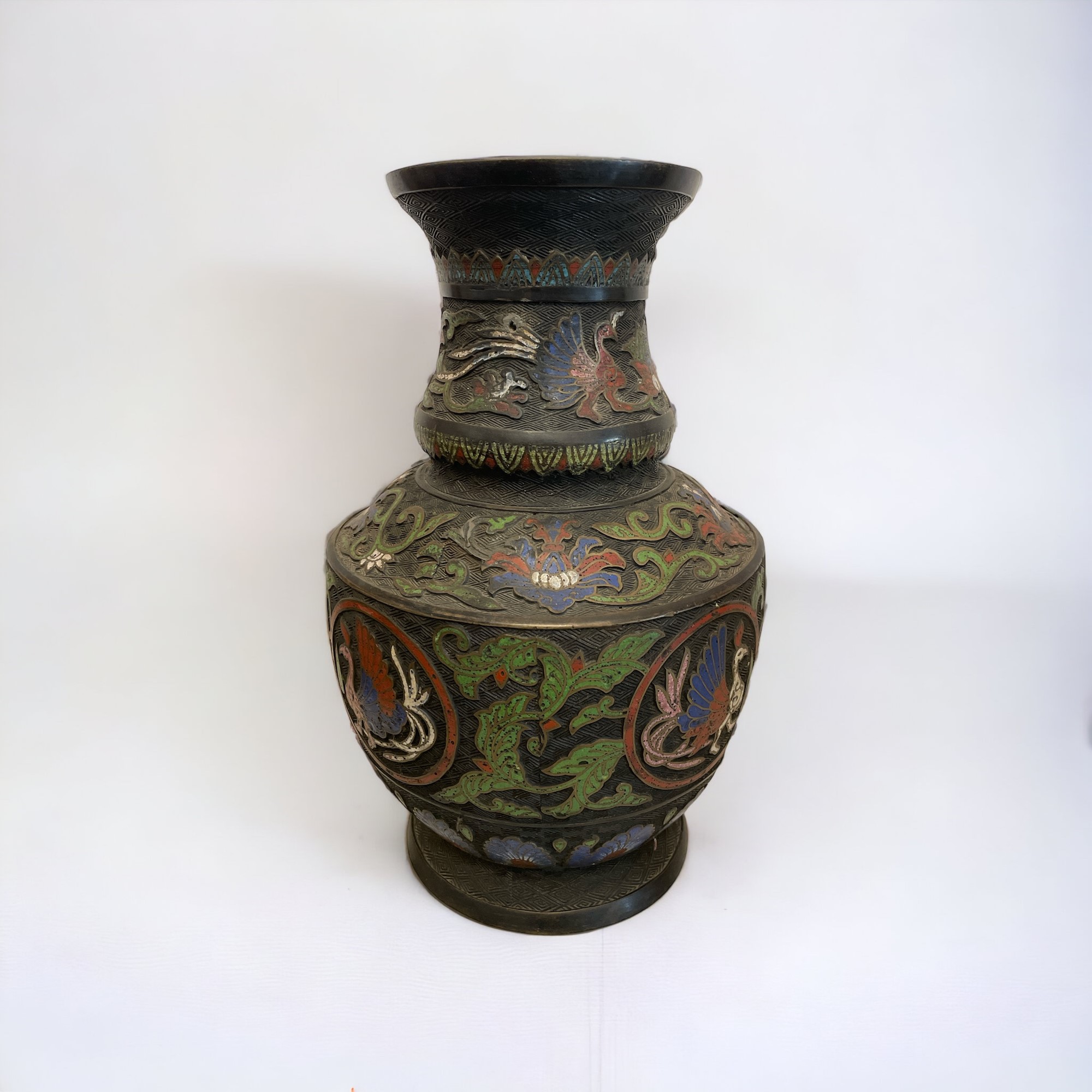 In bronzo e Cloisonné smaltato. Senza base, lievi ammaccature.