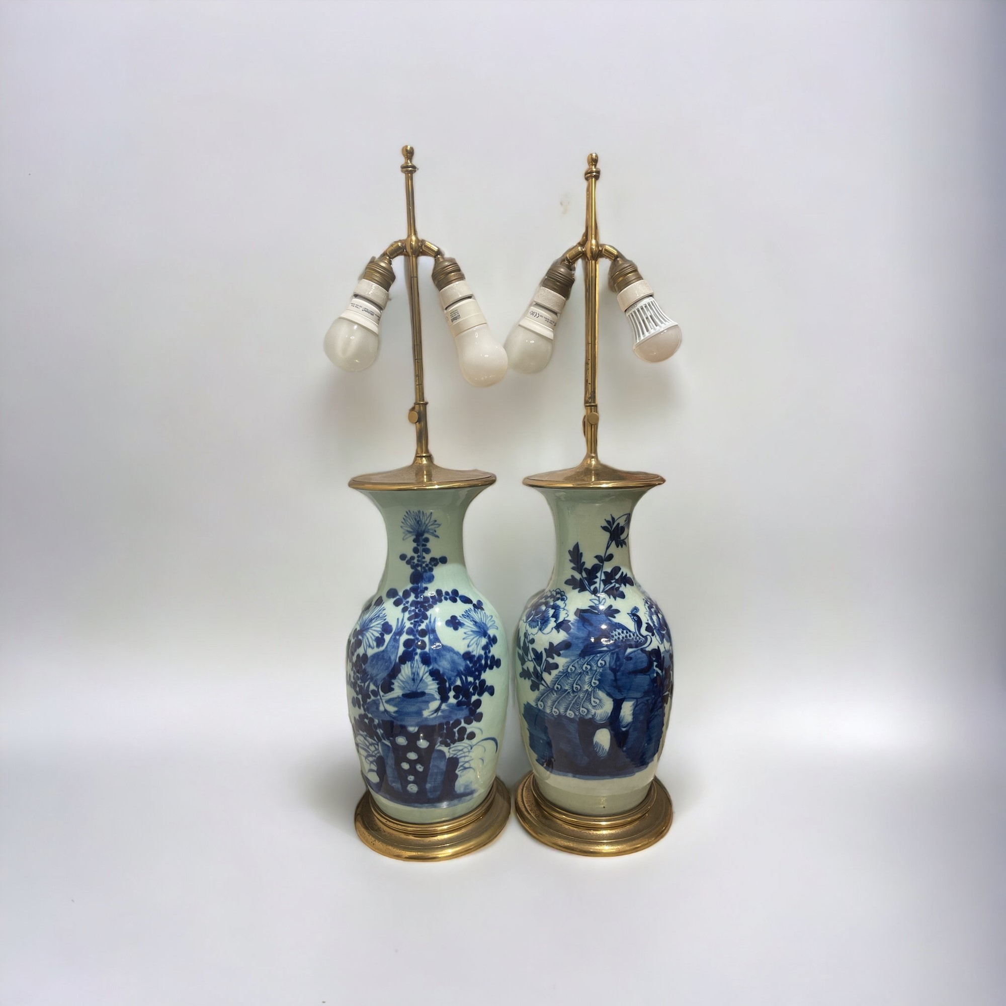 In porcellana dipinta a motivi orientali, adattati a lumi d'appoggio. Compresi di grande paralume.