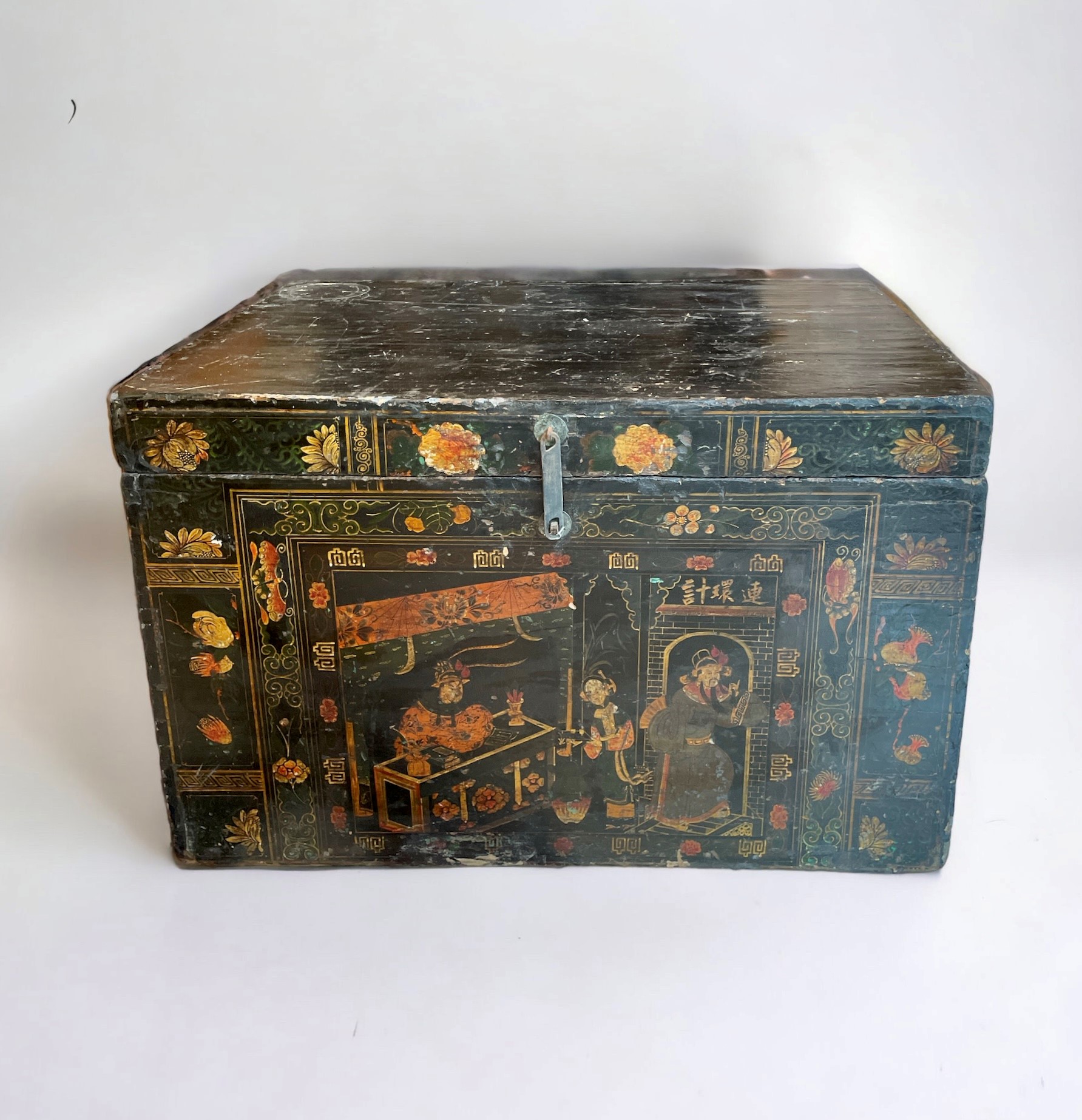 Baule in legno dipinto Manifattura cinese - XIX secolo legno dipinto 59 x 90 x 57 cm