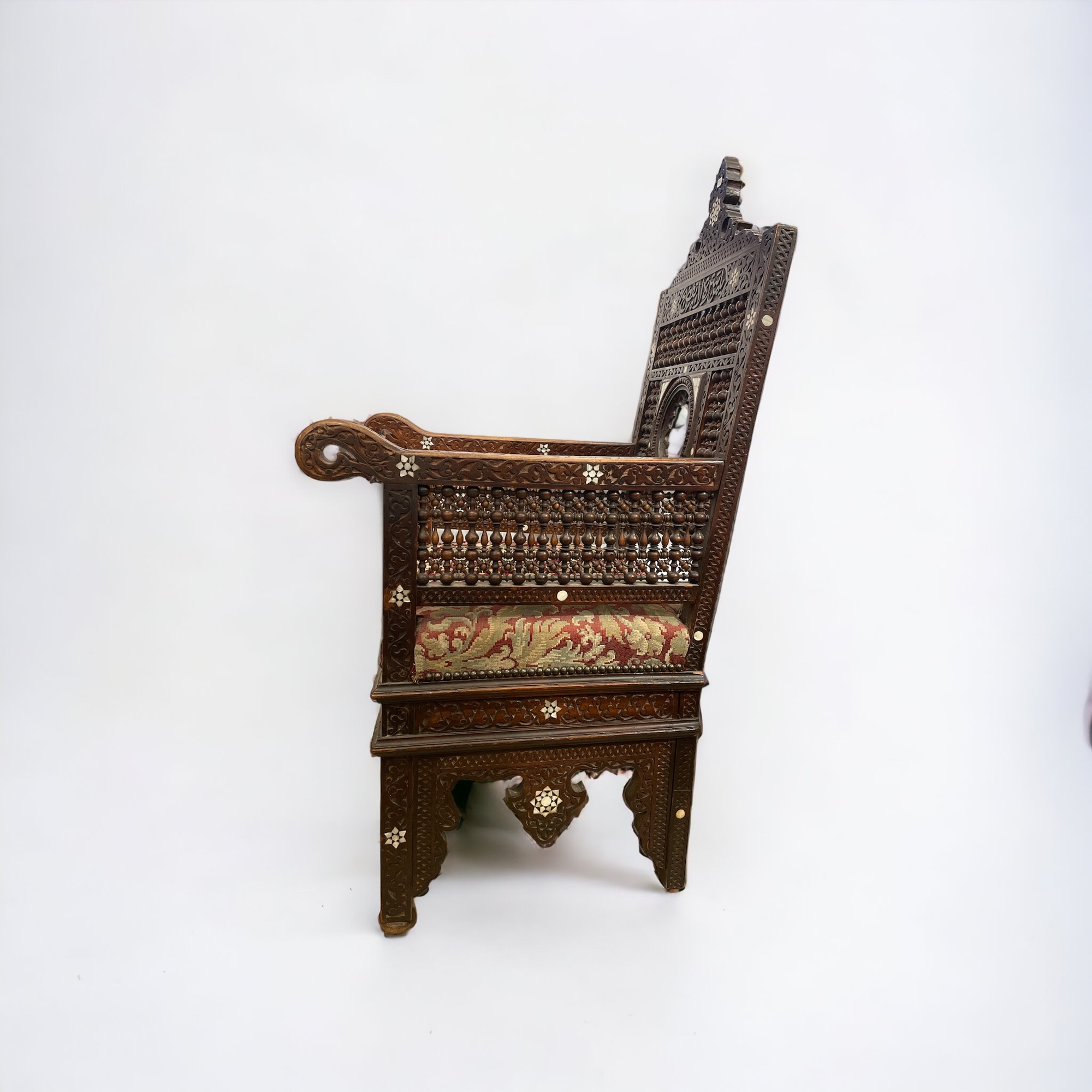 In legno intagliato a motivi orientali, con intarsi in madreperla. Difetti e mancanze.