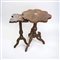 Composto da una coppia di sedie e due tavolini di cui uno quadrilobato e uno ottagonale in legno intagliato a motivi orientali, con intarsi in madreperla. Difetti e mancanze.