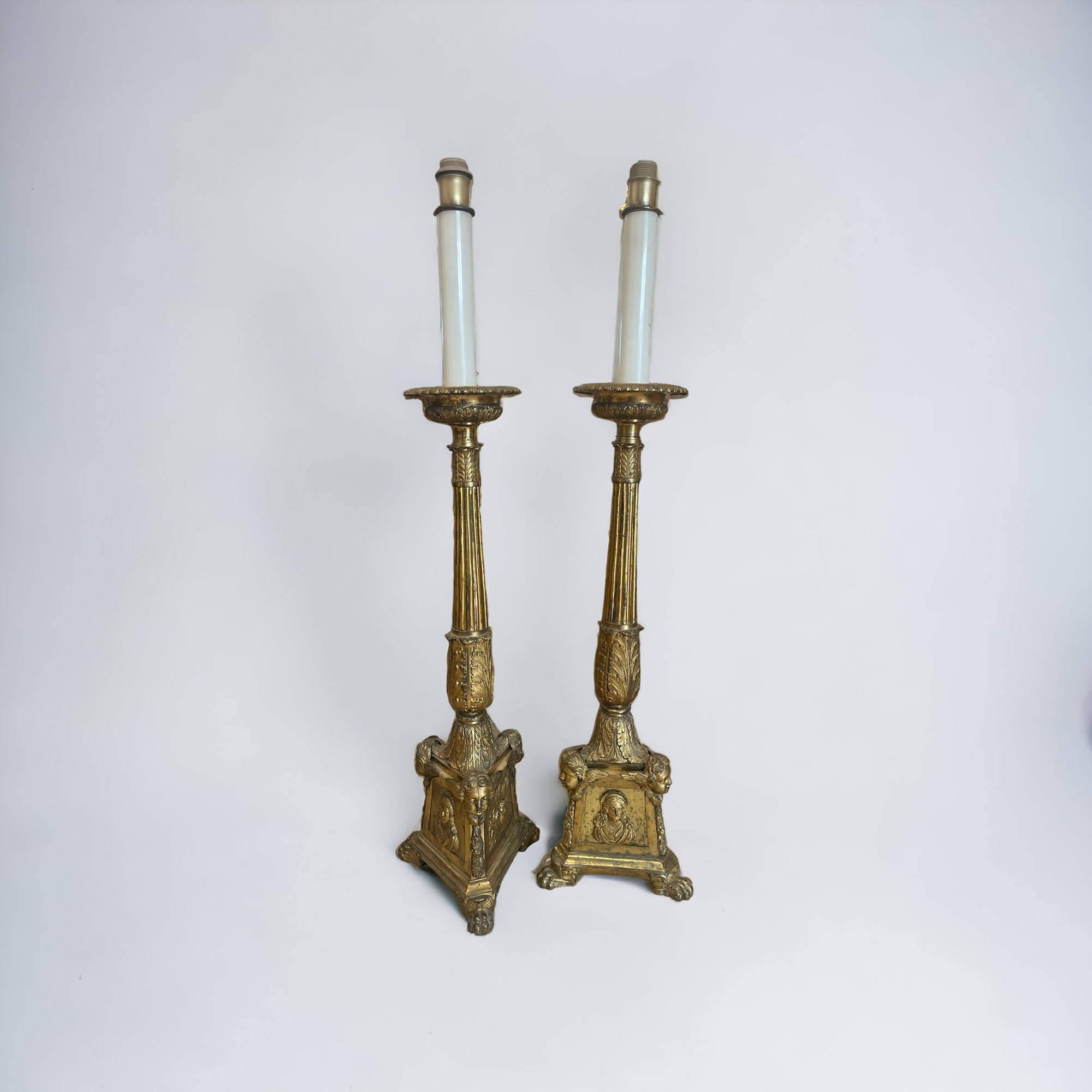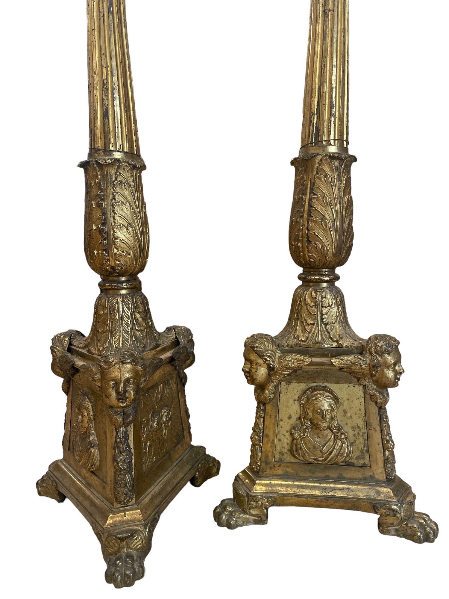 Coppia di torcieri porta candela Manifattura romana - XVIII sec. 84 x 26 cm