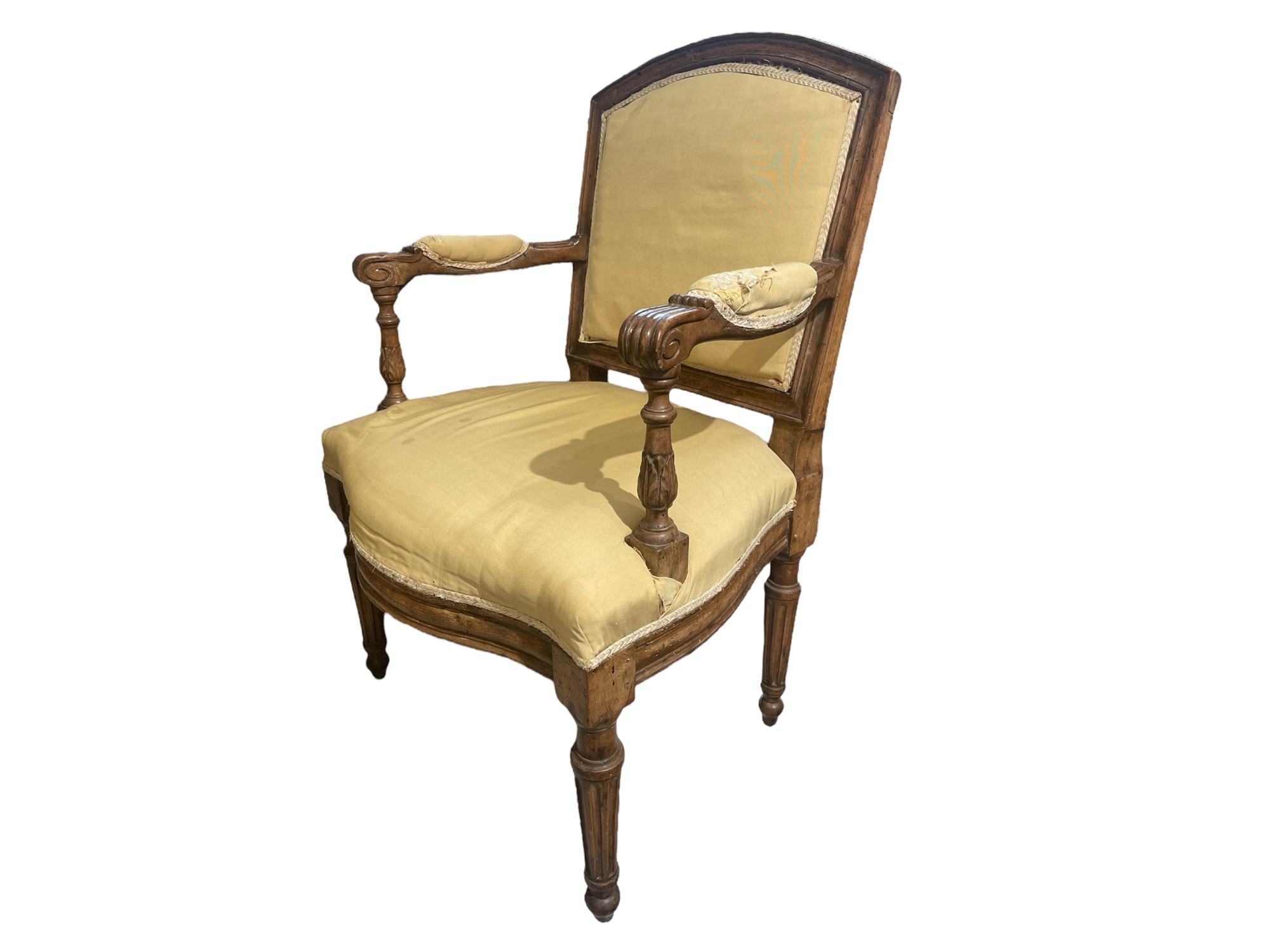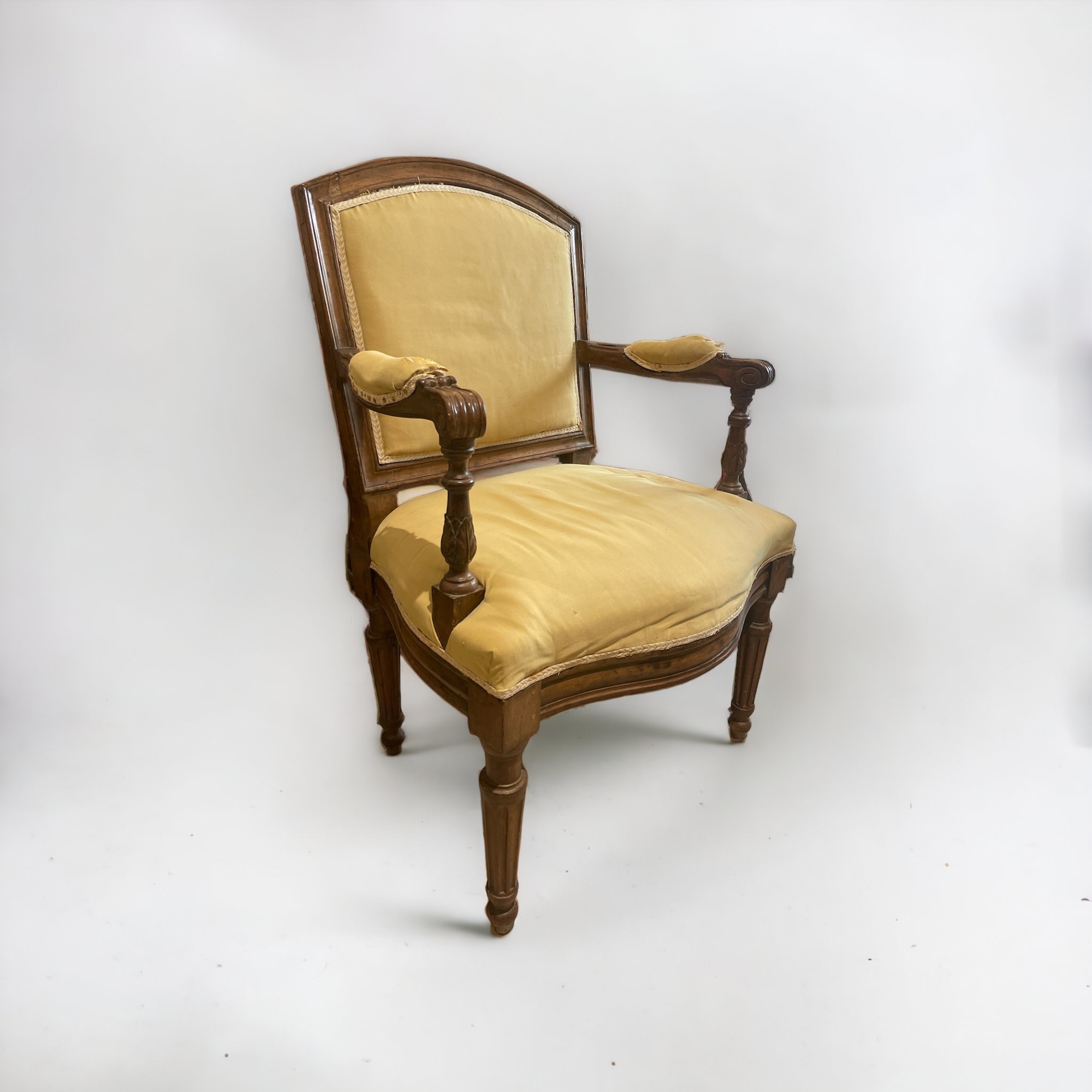 In legno di noce intagliato. Tappezzeria da restaurare.
