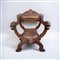 In legno di noce intagliato a stemmi araldici e teste leonine. Rivestimento in cuoio.