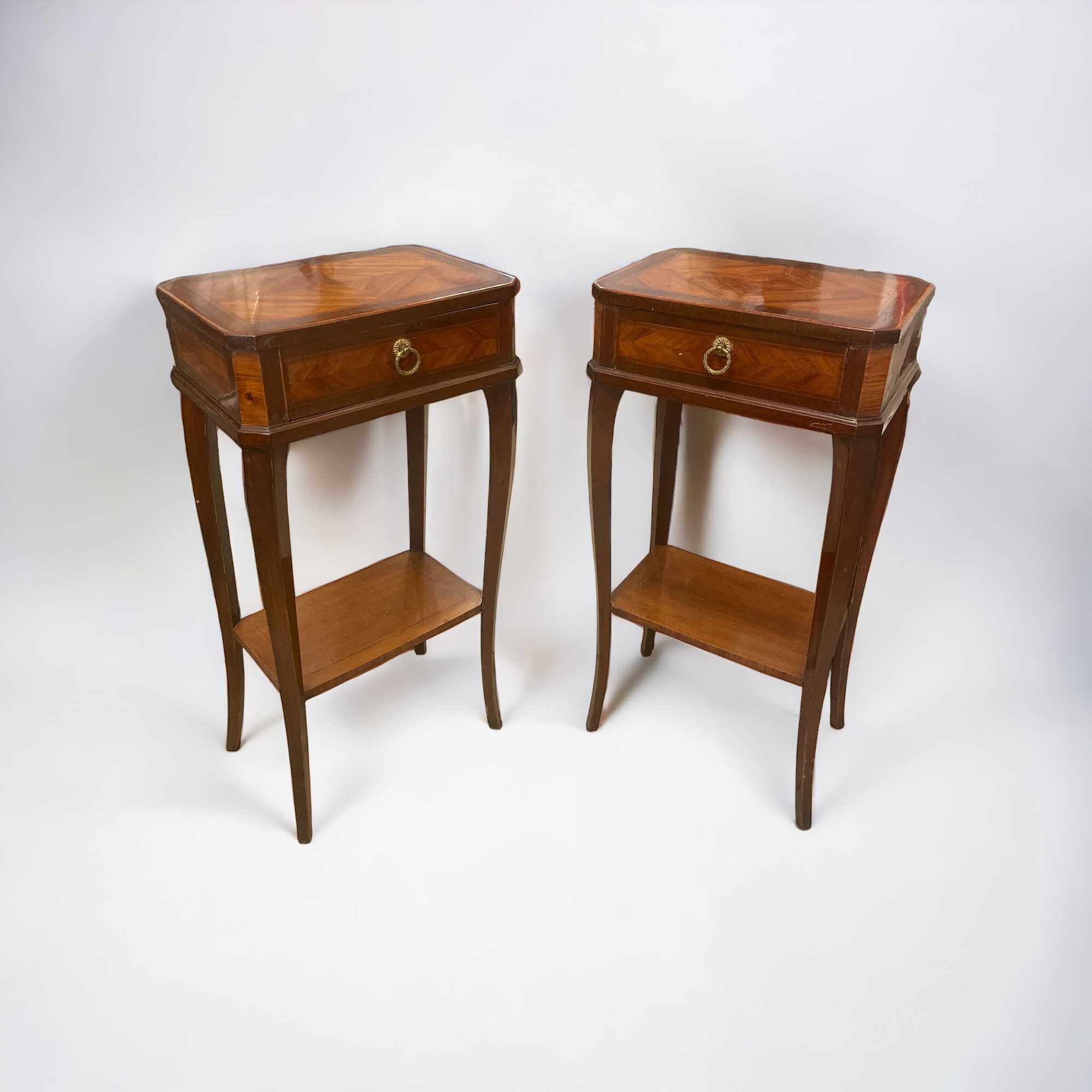 in legno di ebano rosa e palissandro, ad un cassetto e ripiano sottostante. Manifattura francese, linea Luigi XV