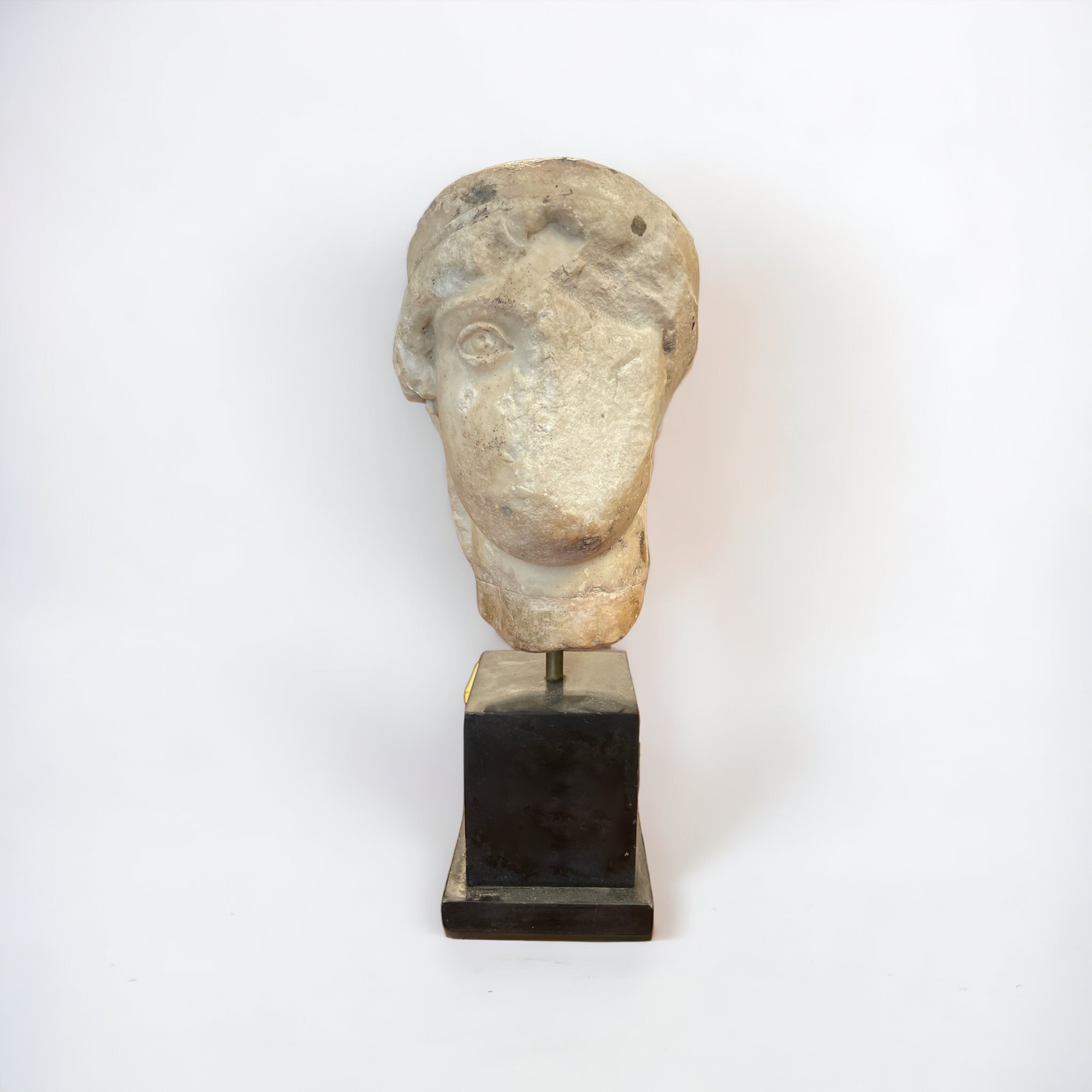 poggiante su un base in marmo nero di epoca moderna. Presenta mancanze e abrasioni varie.