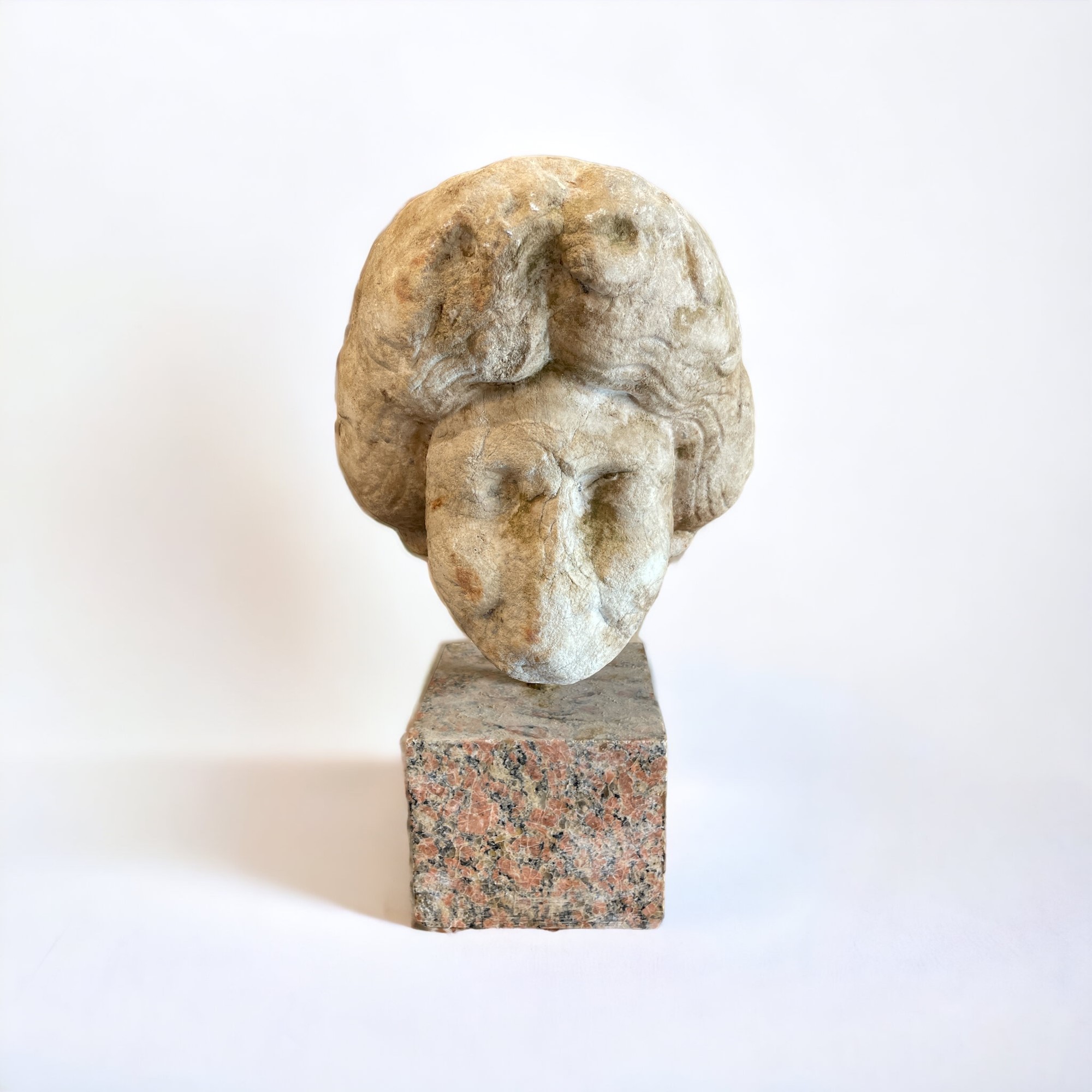 Frammento di volto femminile in marmo bianco manifattura italiana, fine XVI sec. 44 x 30 x 25 cm