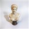 Scultura in volume in marmo bianco su base in marmo rosso di Francia.
