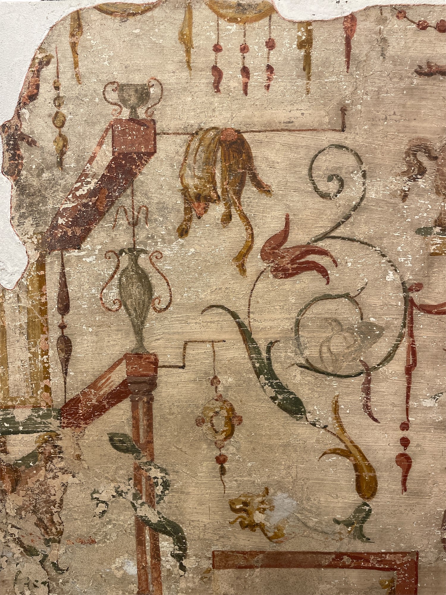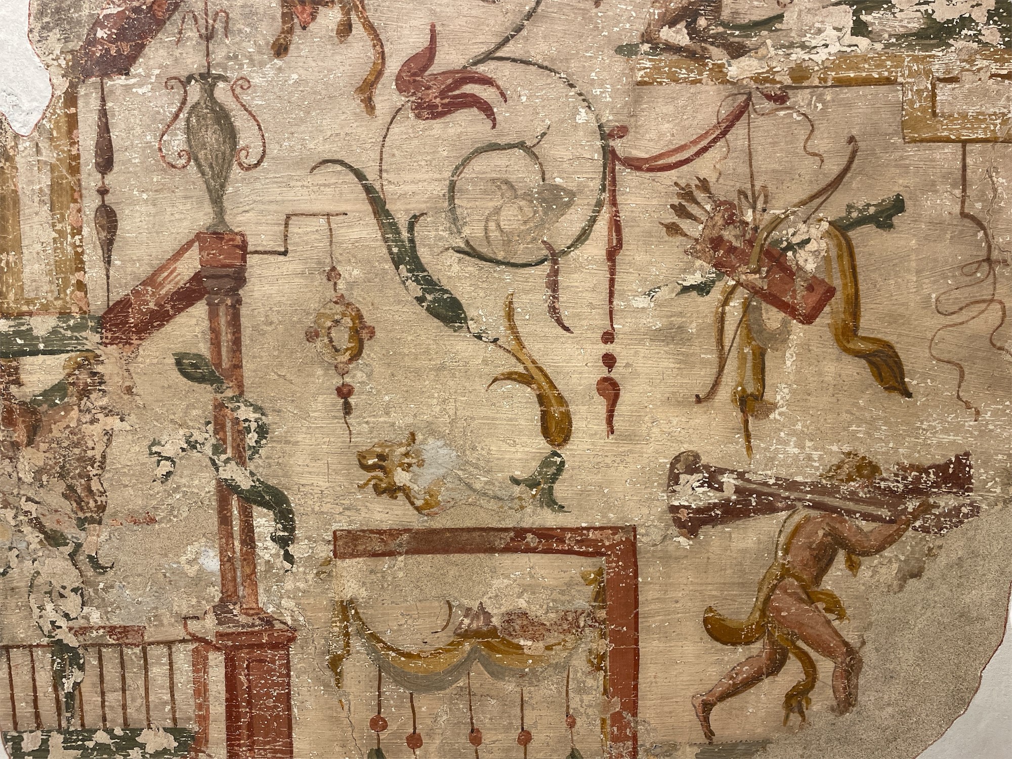 Anselmo Canera (attribuito a) (Verona, 1530 - 1584) Strappo di affresco a grottesche XVI secolo Strappo di affresco a tempera applicato su tela cm 91 x 78
