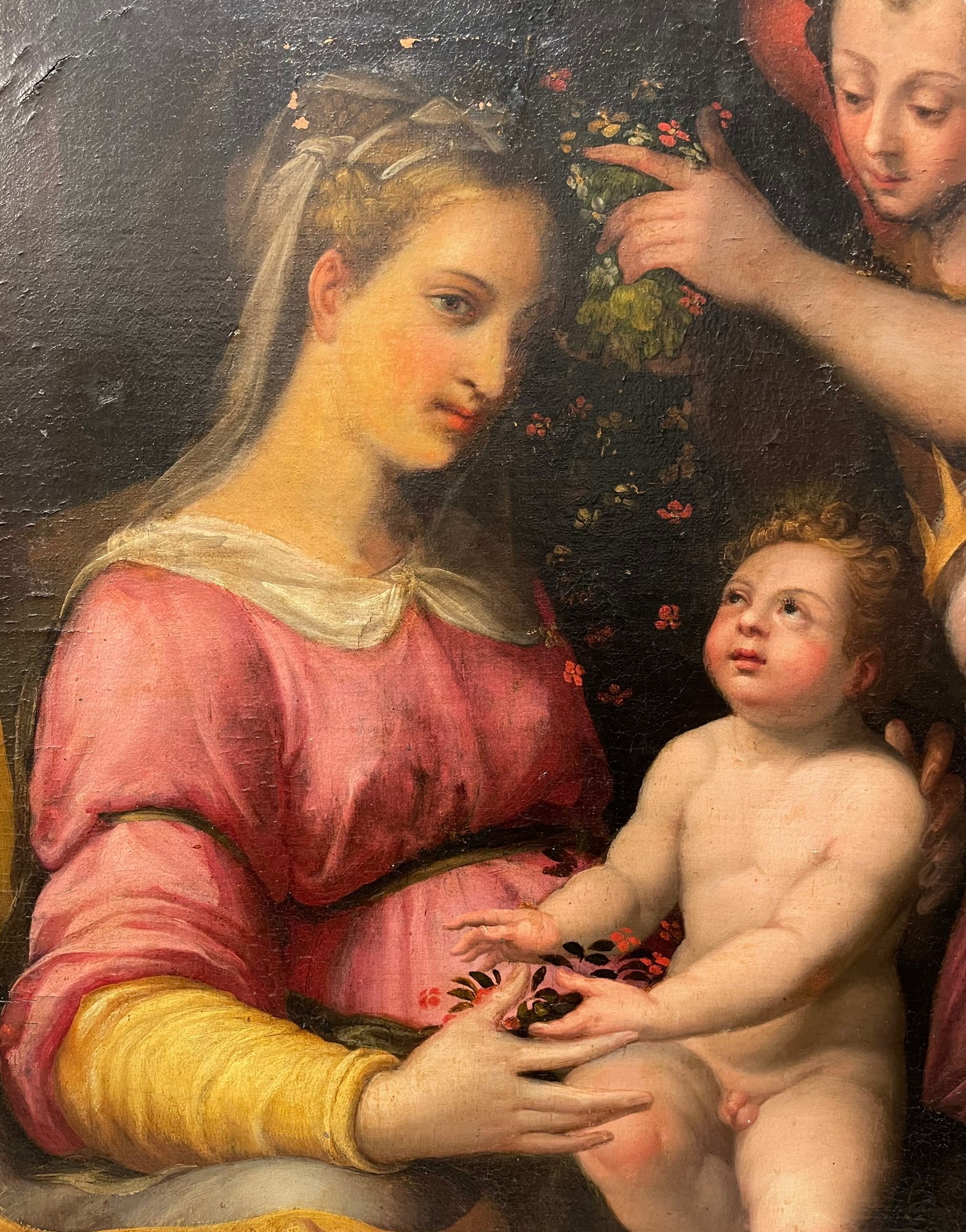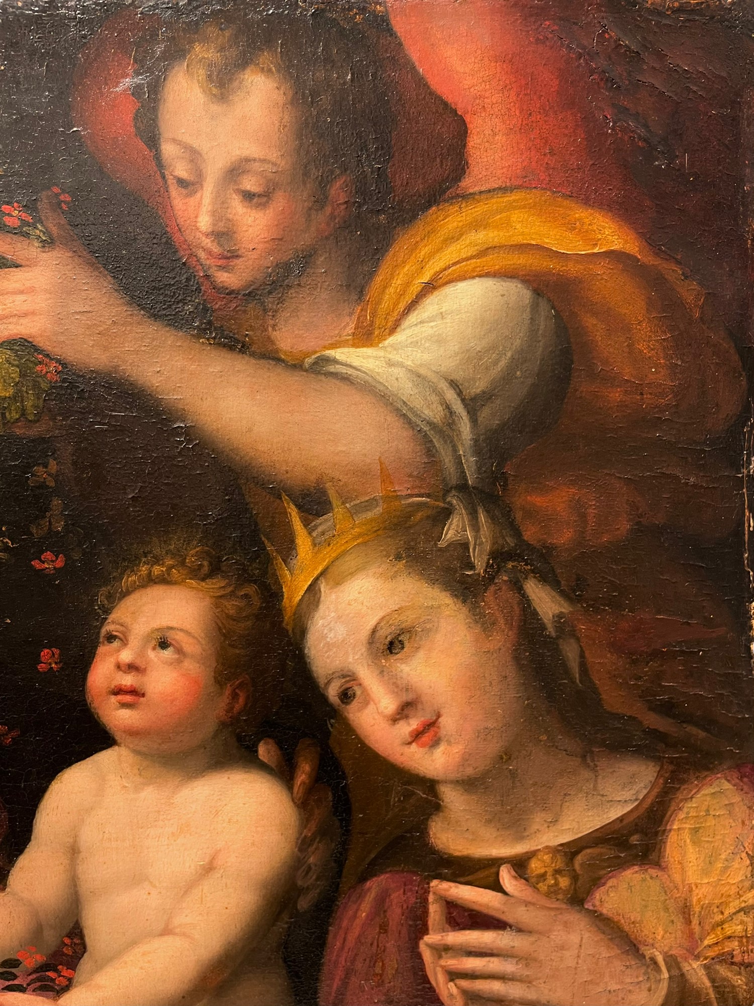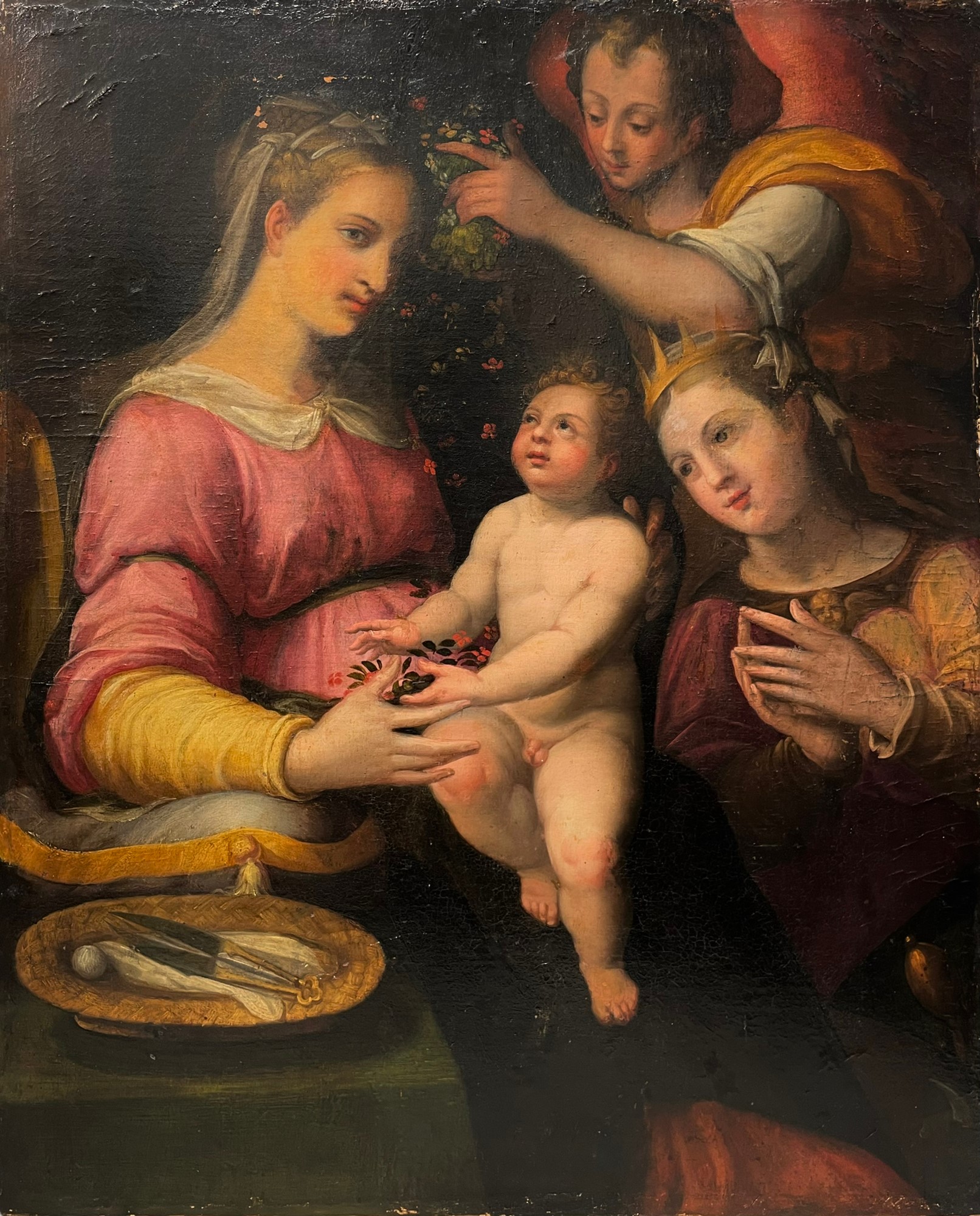Madonna con bambino con Santa Caterina d'Alessandria e un Angelo Scuola Toscana, fine XVI secolo olio su tela 83 x 68cm