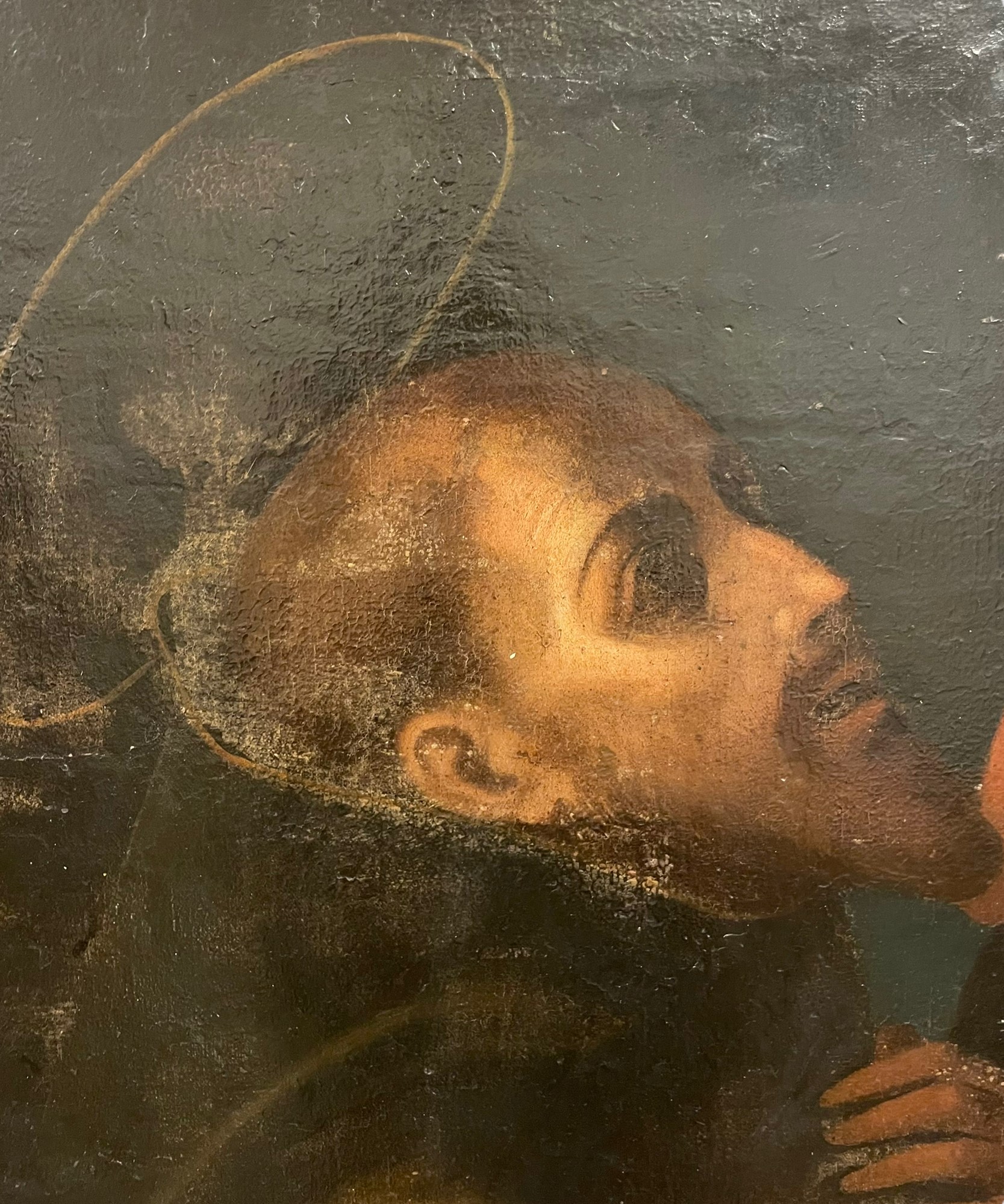 Santo Francescano con fanciullo e anime del purgatorio Scuola Toscana, fine XVI secolo olio su tela 128 x 100cm