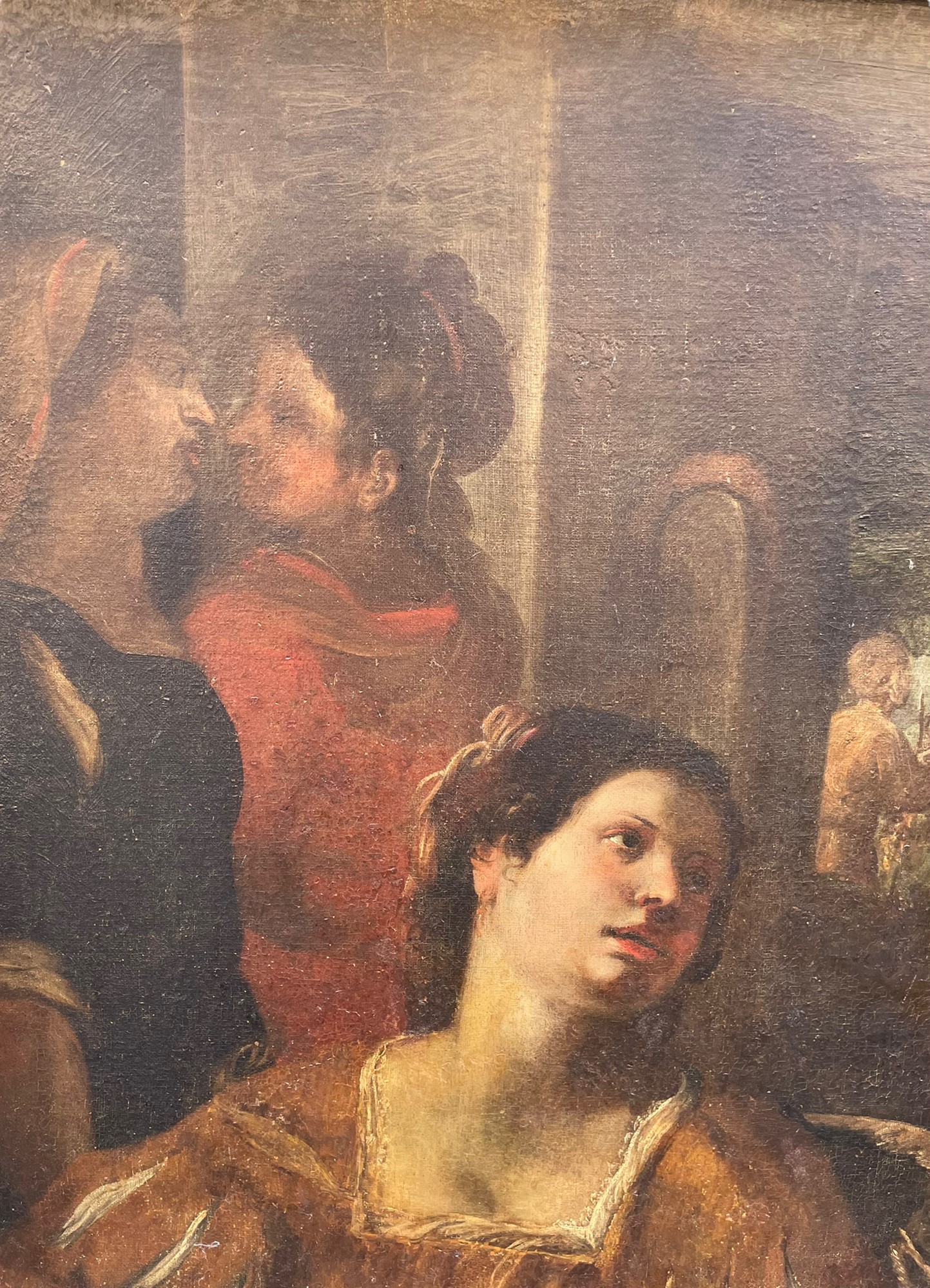 Carlone lo risolve in questo dipinto databile in un momento relativamente giovanile, verso la metà del secolo, con una scena animata e narrata con brio.