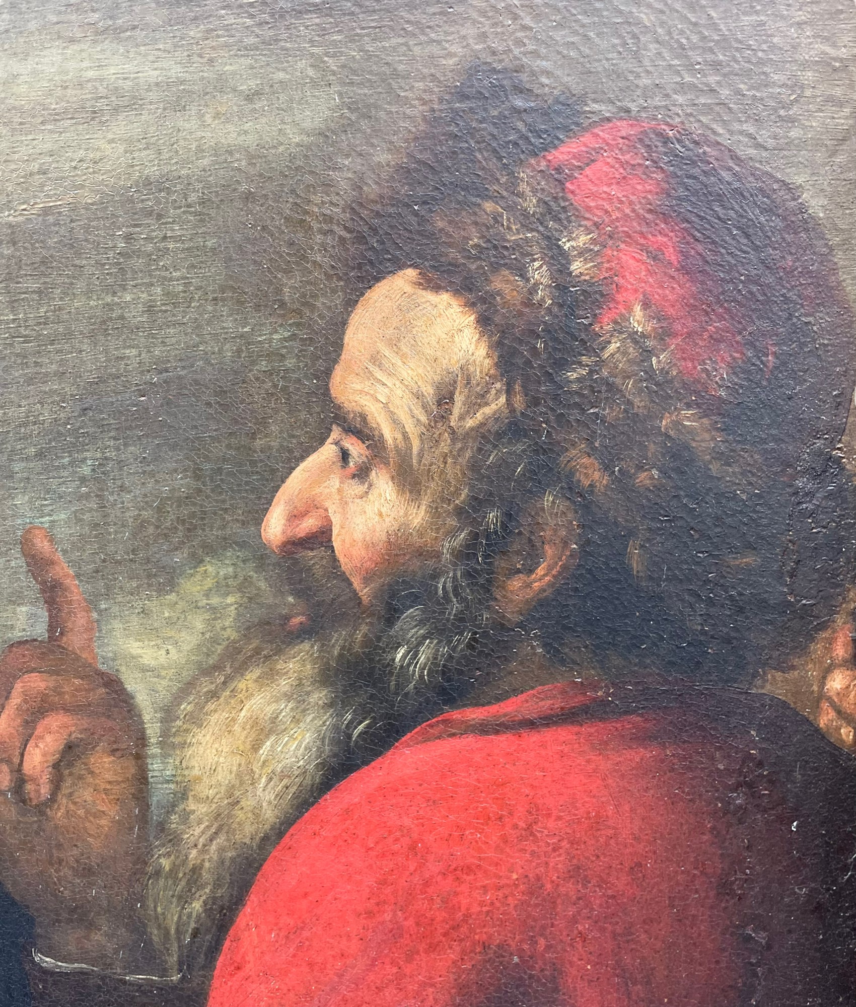 Giovanni Battista Carlone (Genova, 1603 - Parodi Ligure, 1683/84) Labano raggiunge Giacobbe in fuga verso Canaan Metà XVII secolo olio su tela 133 x 172cm