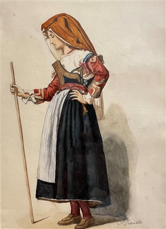 Cesare Tiratelli (firma_di) (1864 - 1933) Profilo di giovane paesana acquerello e matita su carta 27 x 20cm