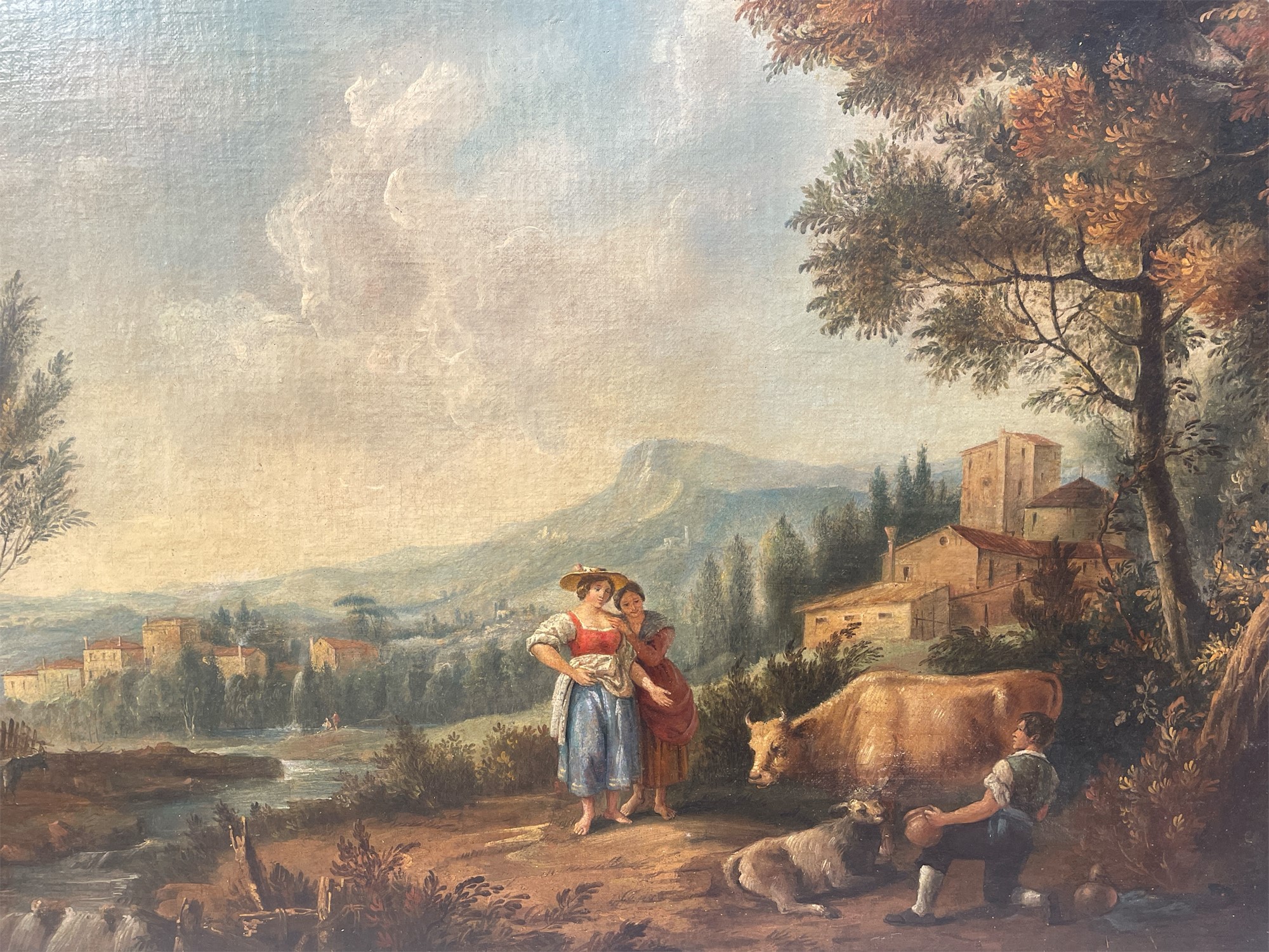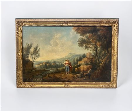 Nei modi di Nicolaes Berchem (1620 - 1683). In cornice.