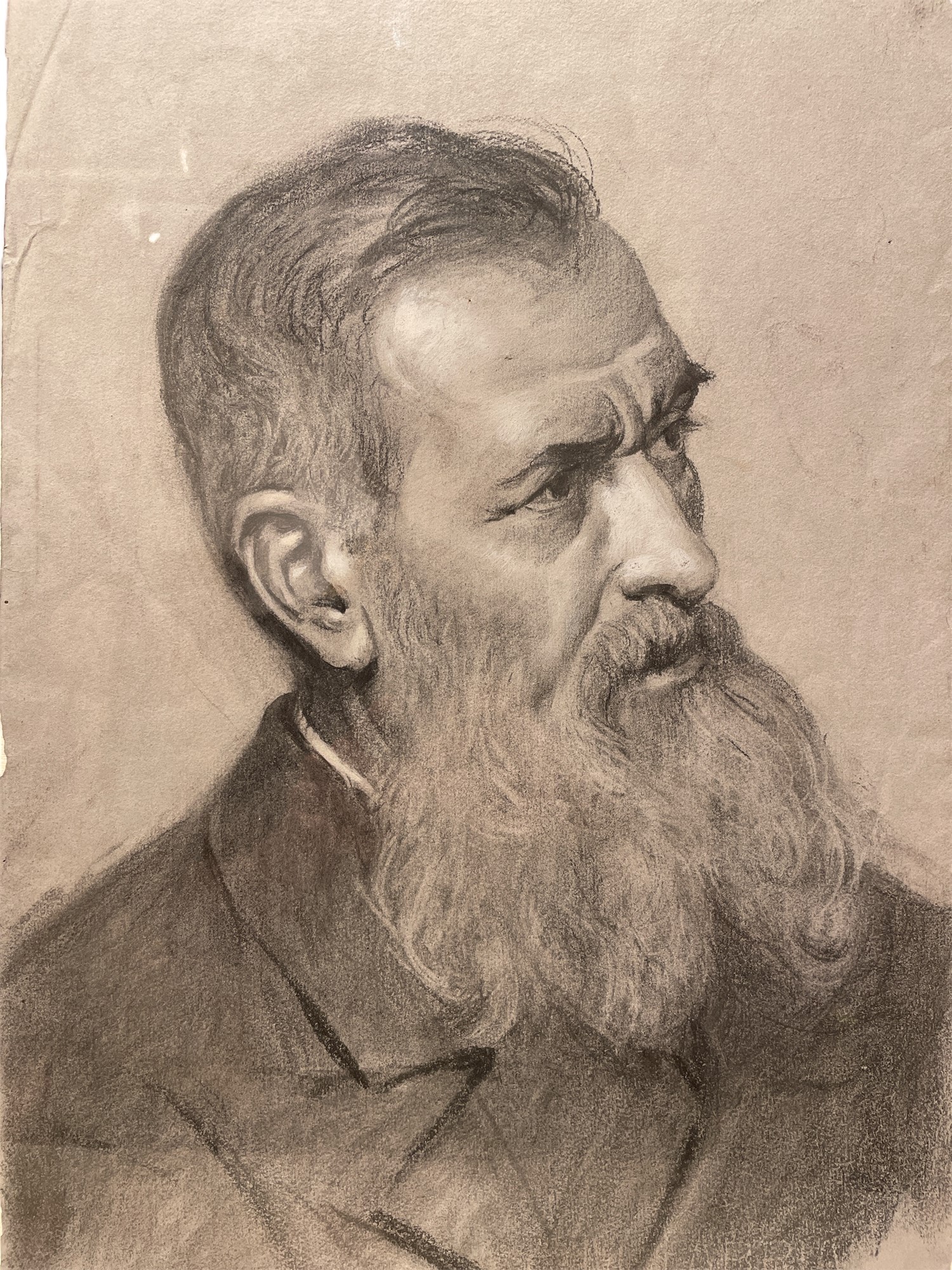 Ritratto di uomo anziano Fine del XIX secolo Grafite e biacca su carta Fabriano cm 48 x 33,5