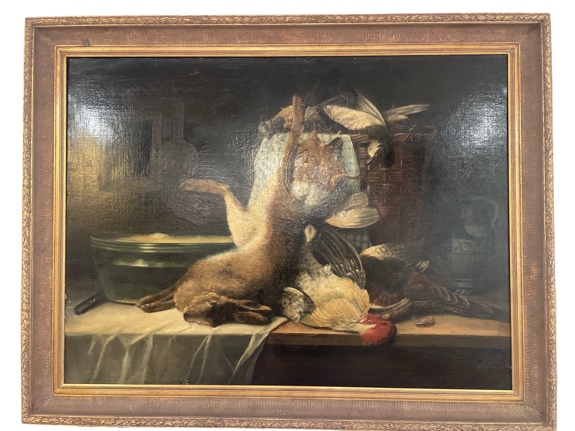 Scuola fiamminga - Cacciagione 1883 olio su tela cm 88 x 125