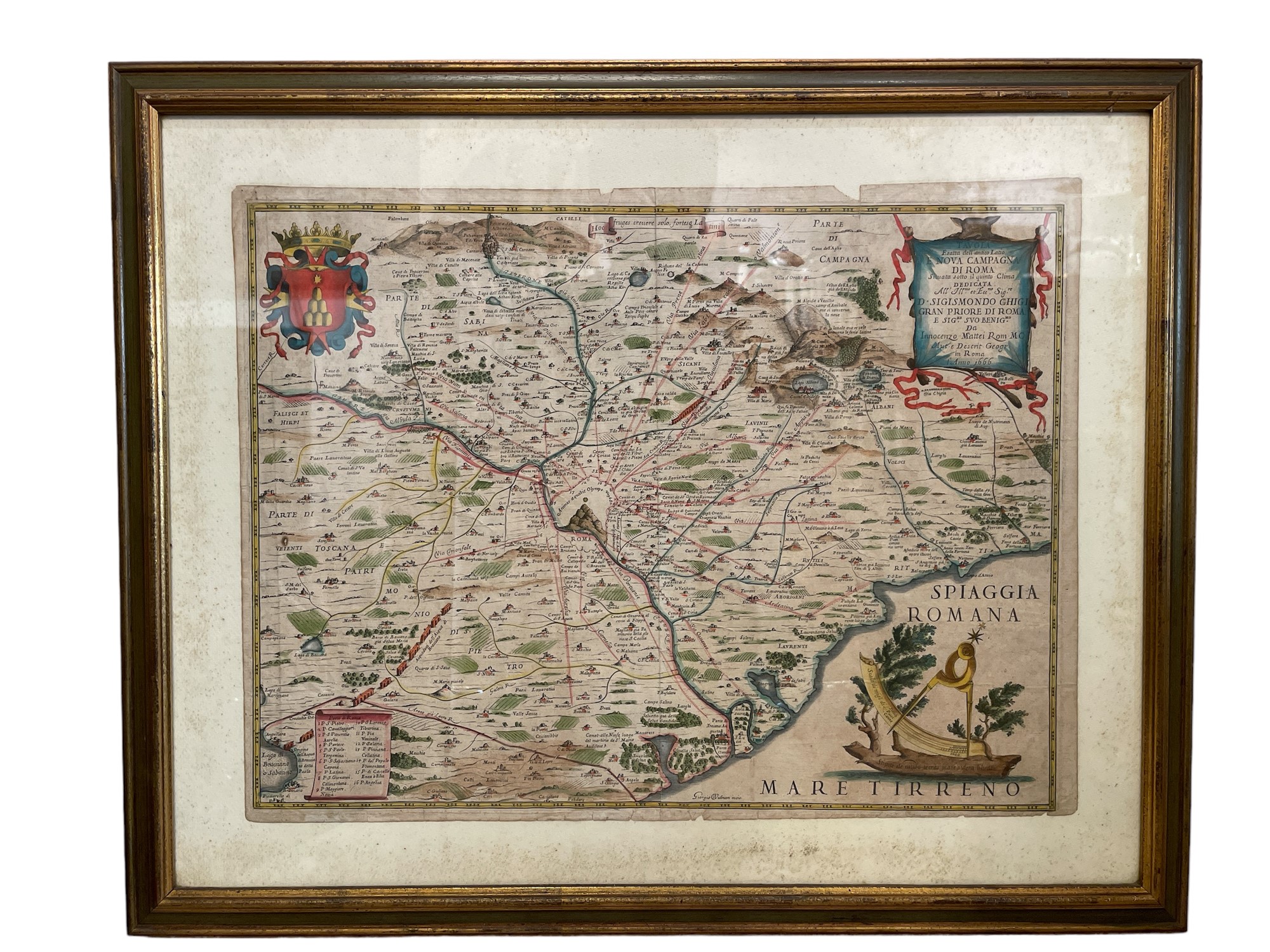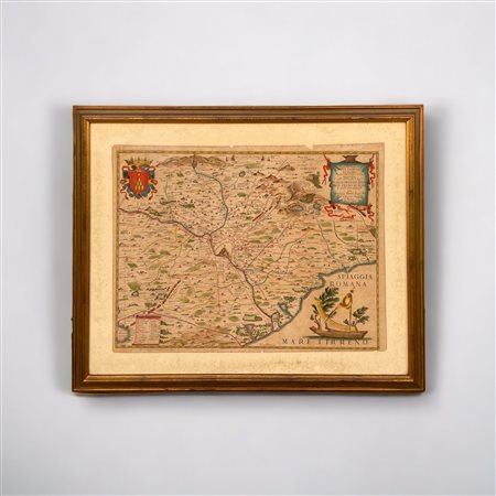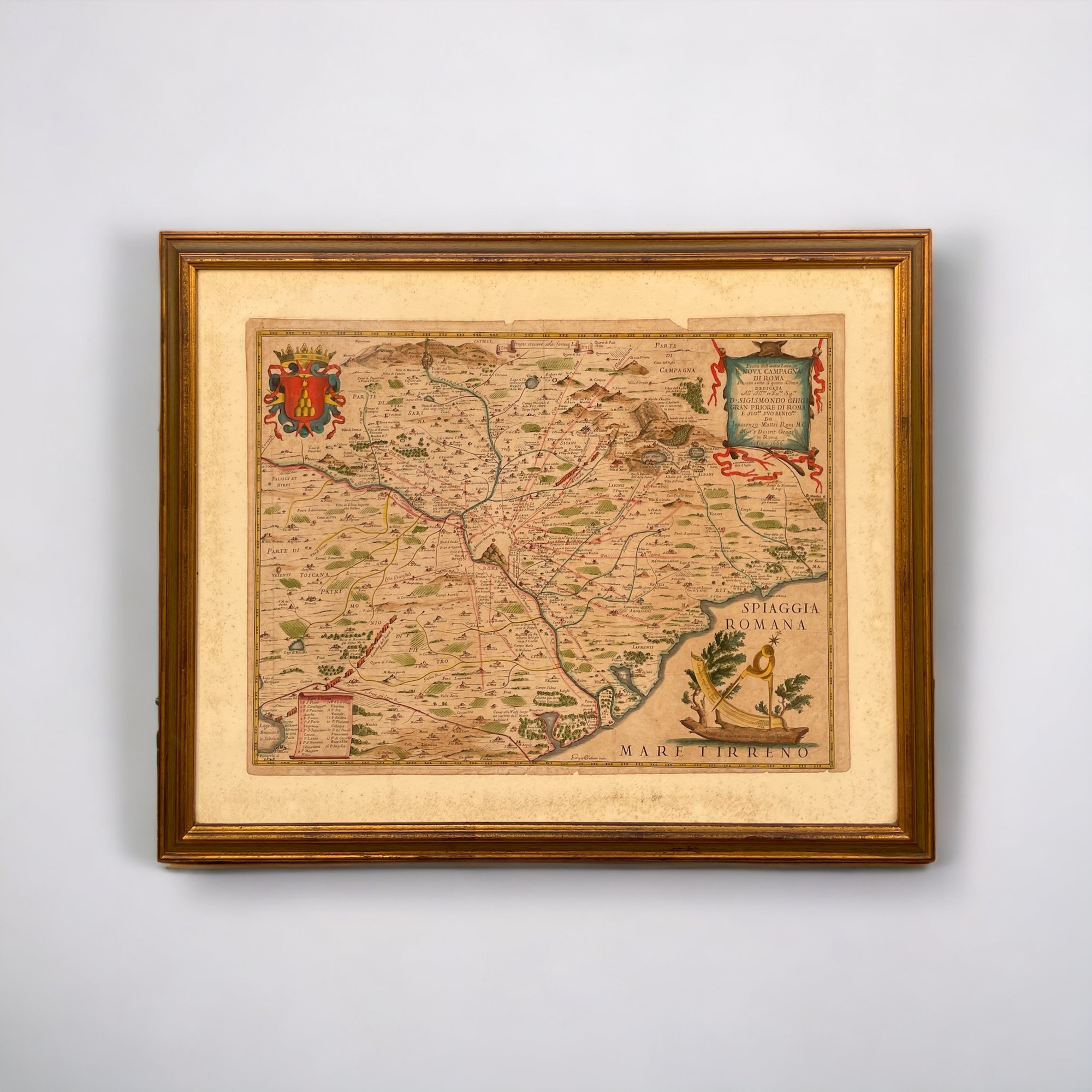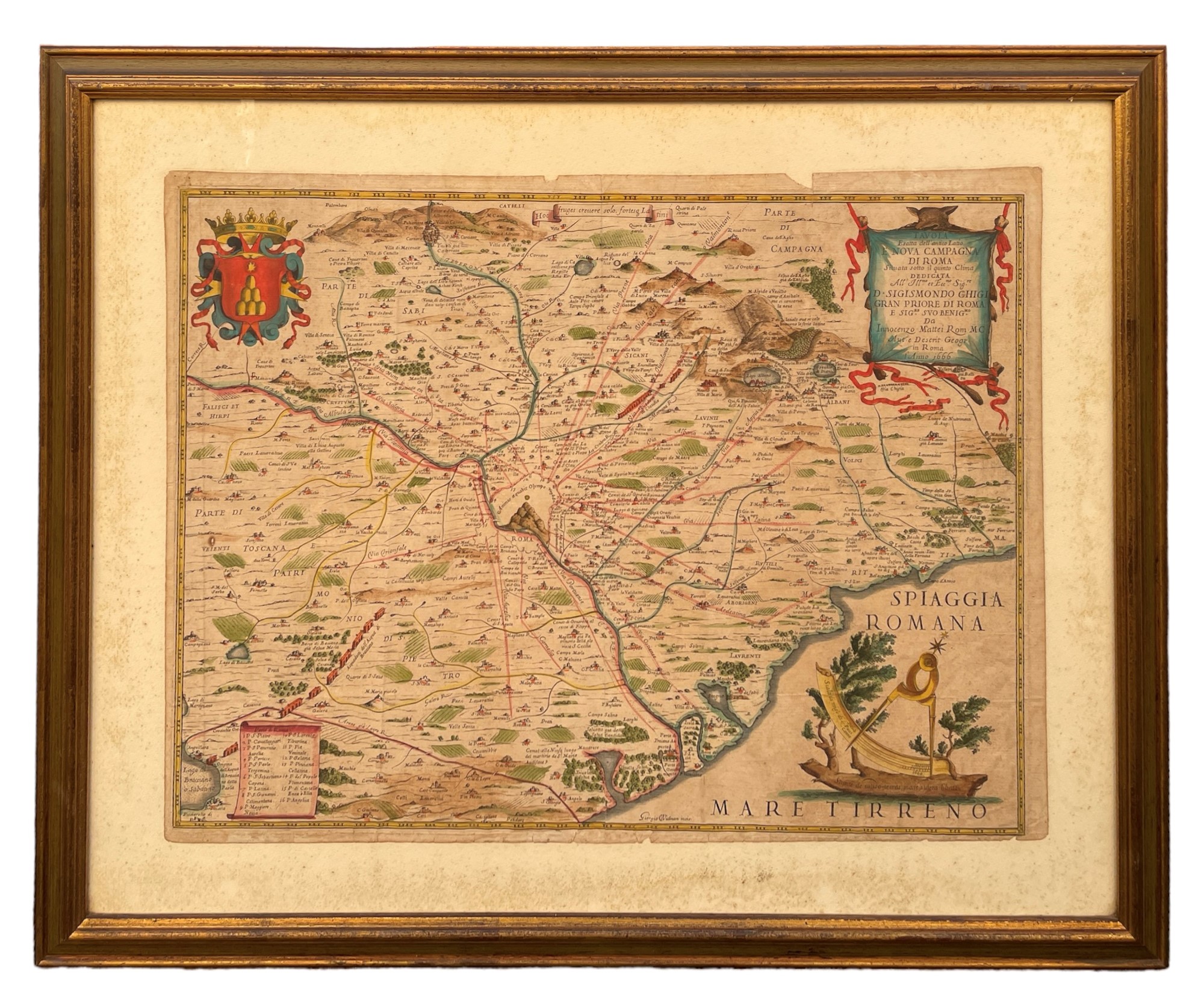 Giorgio Widman (XVII secolo - ) Tavola Esatta dell'antico Latio e Nova Campagna di Roma 1666 e succ. incisione in rame acquarellata a mano mm 390 x 523