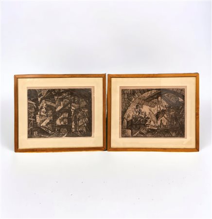Giovanni Battista Piranesi (1720 - 1778) Coppia di incisioni tratte dalla serie "Carceri di invenzione" metà del XIX secolo