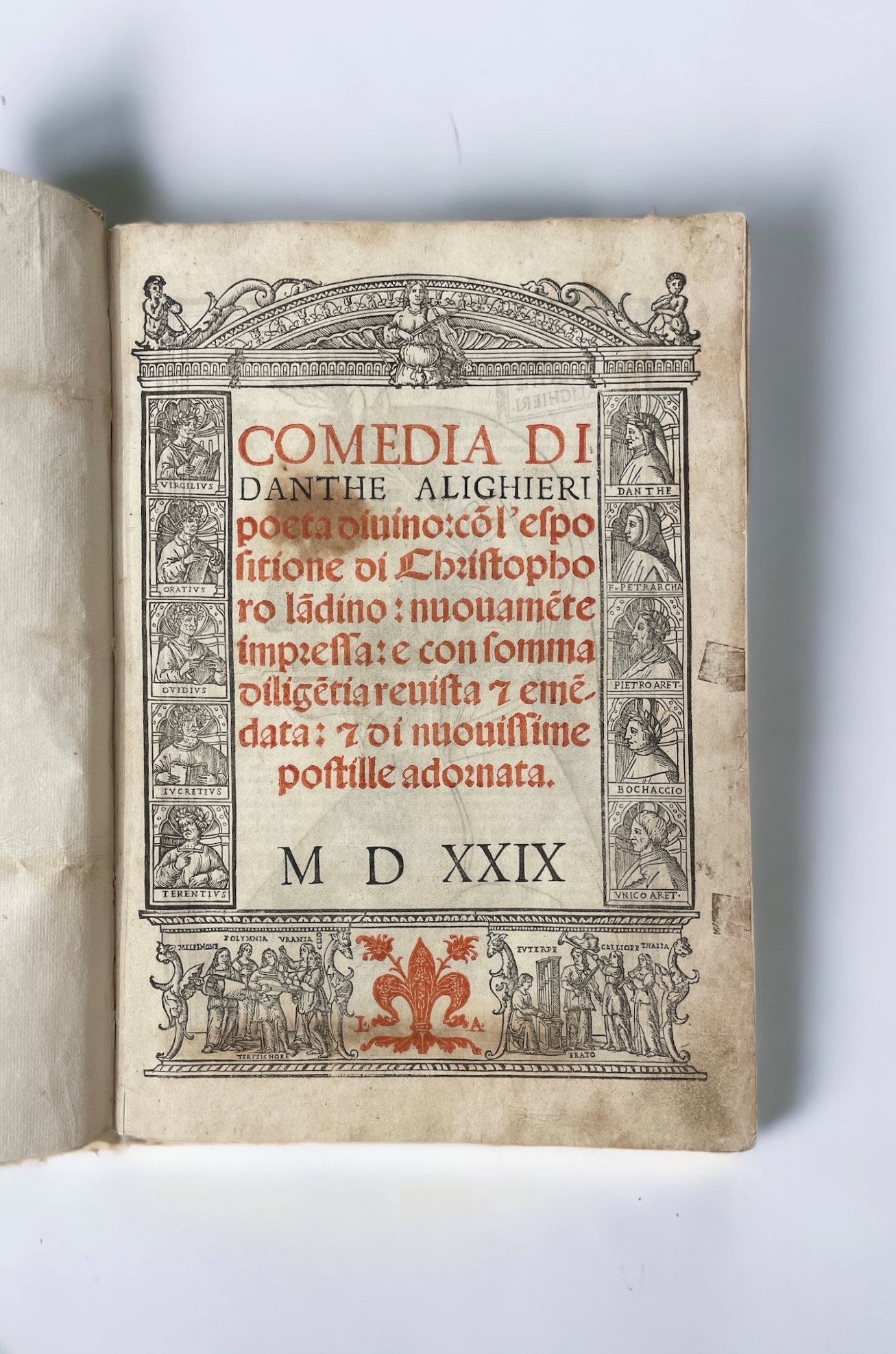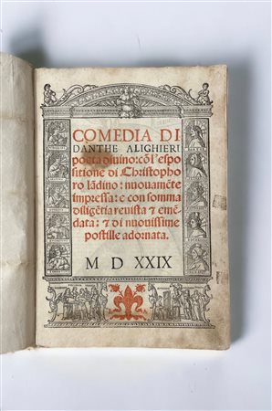 Questo volume, stampato a Venezia il 23 gennaio 1529, propone la Commedia con il commento del Landino.