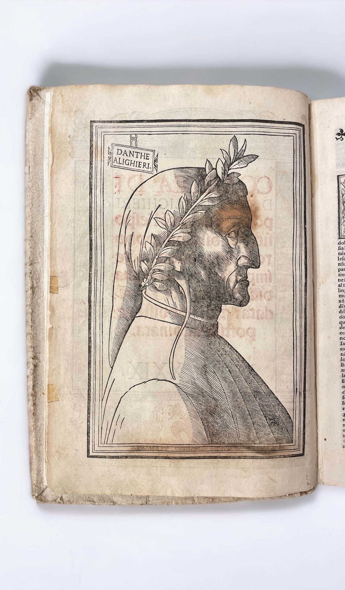 L' edizione presenta al verso del frontespizio, per la prima volta in una Commedia, anche uno splendido ritratto di Dante nel suo celebre profilo, coronato d’alloro, che ricorda quello apparso nel Convivio edito a Venezia nel 1521. Entrambi non possono che rifarsi al ritratto del poeta dipinto da Sandro Botticelli alla fine del Quattrocento.