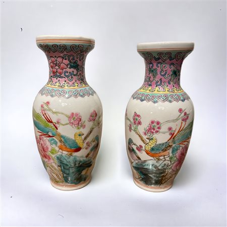Coppia di piccoli vasi Cina, XX secolo 14 x 4 cm la base