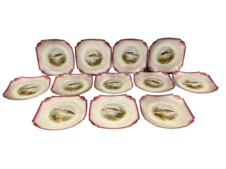 Franz Anton Melhem - Bonn Set di 12 piatti con decorazioni ittiche metà del XX secolo cm 12 x 12
