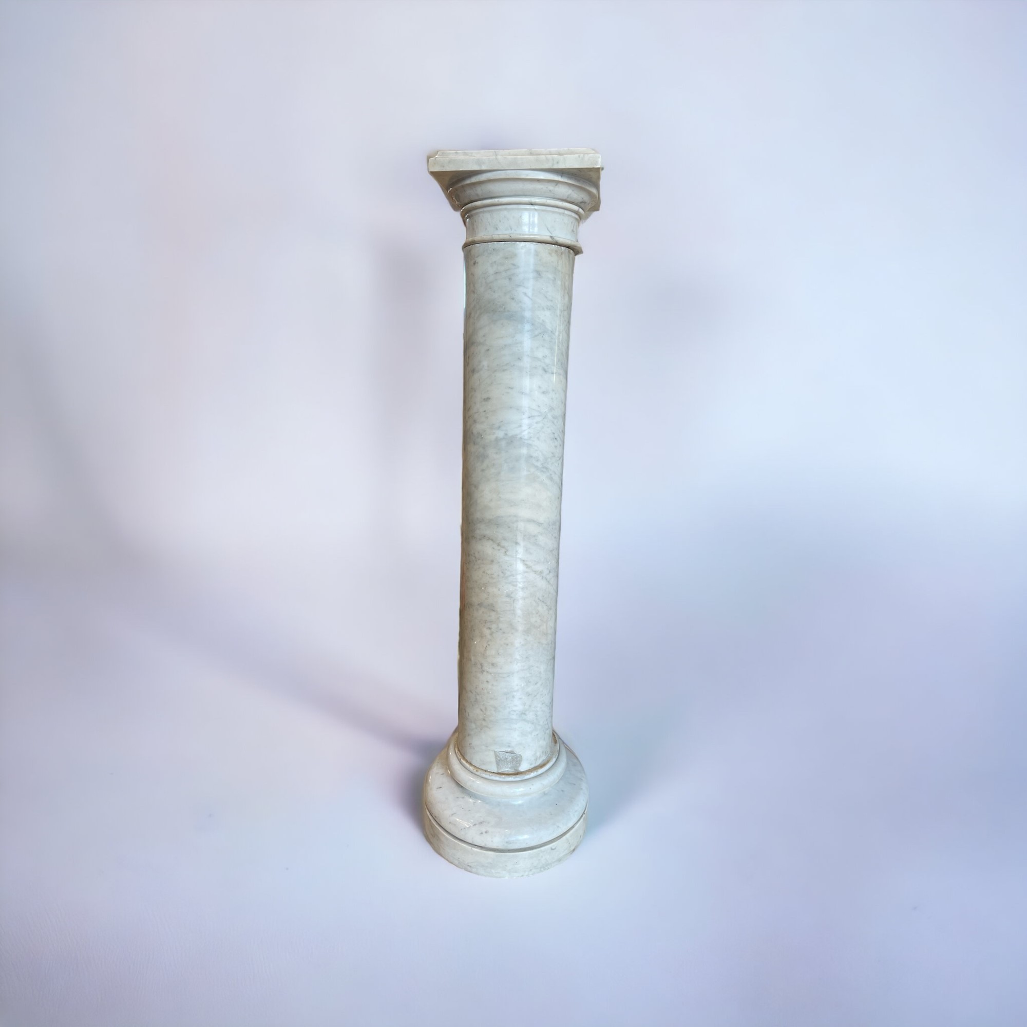 in marmo bianco di carrara, con basamento circolare e piano superiore quadrato.