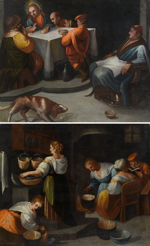 SCUOLA BASSANESCA, XVII SECOLO Interno di cucina con figure Interno con...