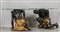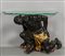 Coppia di consoles sorrette da una scultura raffigurante un moretto accovacciato in legno intagliato laccato e dorato piani in cristallo Venezia sec.XIX