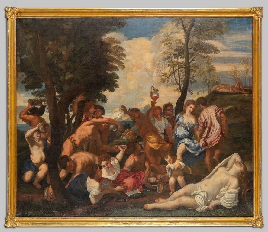 Scuola francese sec.XVIII 'Baccanale' olio s.to in b. a s. MP
