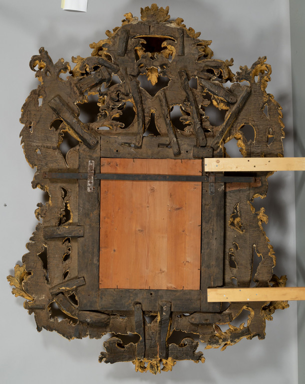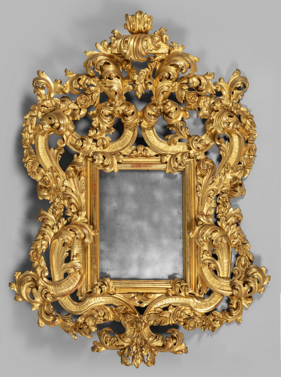 Grande specchiera in legno intagliato e dorato a volute sec.XIX