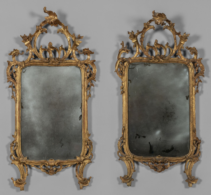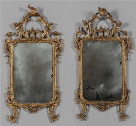 Coppia di piccole specchiere in legno intagliato e dorato Lombardia I metà sec.XVIII