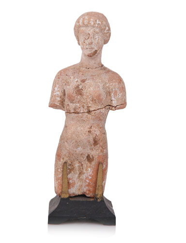 BAMBOLA ATTICA IN TERRACOTTA, META' DEL V SEC. A.C., a figura femminile nuda; tracce di colorazione; rincollatura.; su supporto moderno.