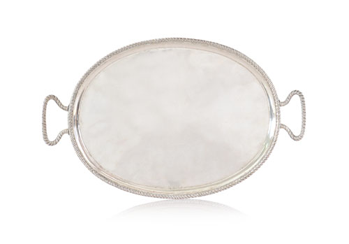 VASSOIO IN ARGENTO, VENEZIA, FINE XVIII SECOLO, ovale, con doppio manico e bordo cordonato.